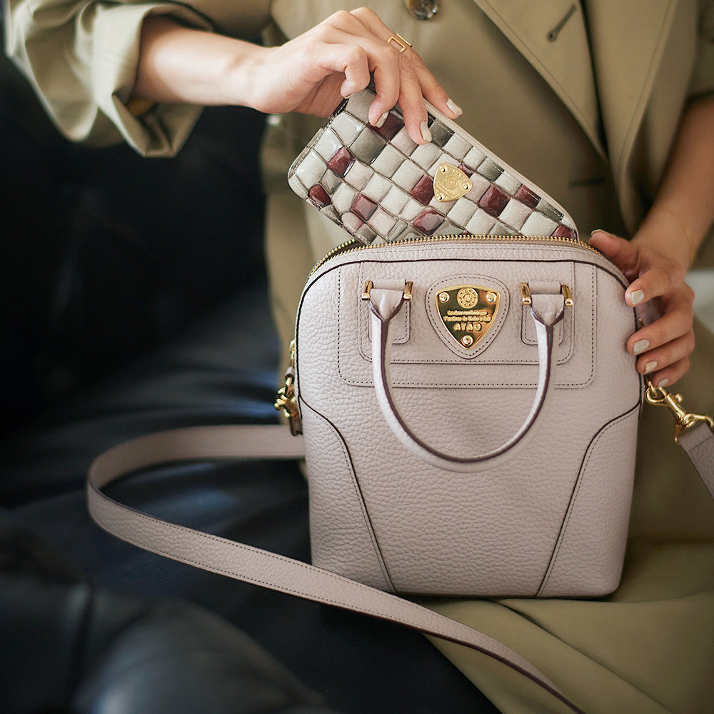ATAO(アタオ)(あたお)りんごをモチーフにしたATAOを象徴する幸運のデザイン『アップル200』。(ハンドバッグ)(ミニバッグ)(ミドルバッグ)(ミディアムバッグ)(ショルダーバッグ)(肩がけ)(斜め掛け)堅牢なレザーに優美なカーブを描いた美しいフォルムは、いつものコーデに「上質さ」というクラス感を与えてくれます。(カウレザー)(牛革素材)