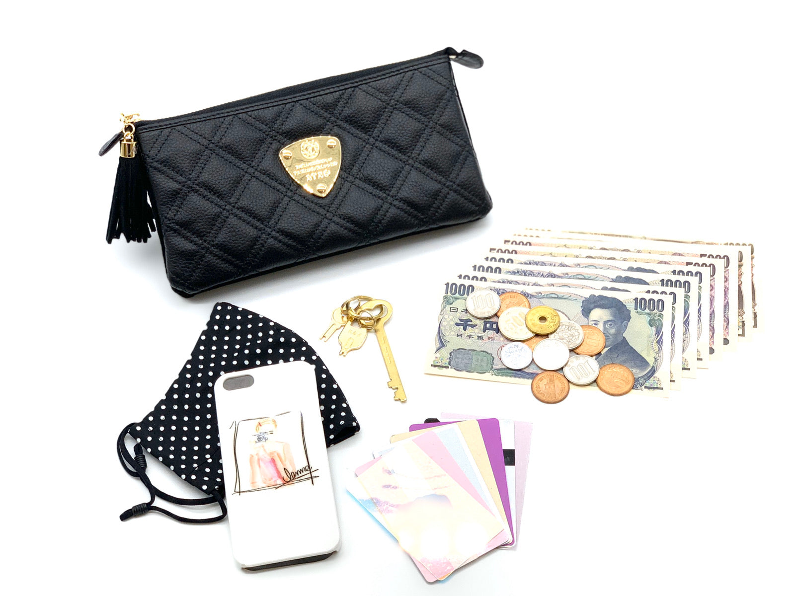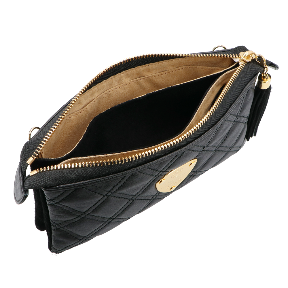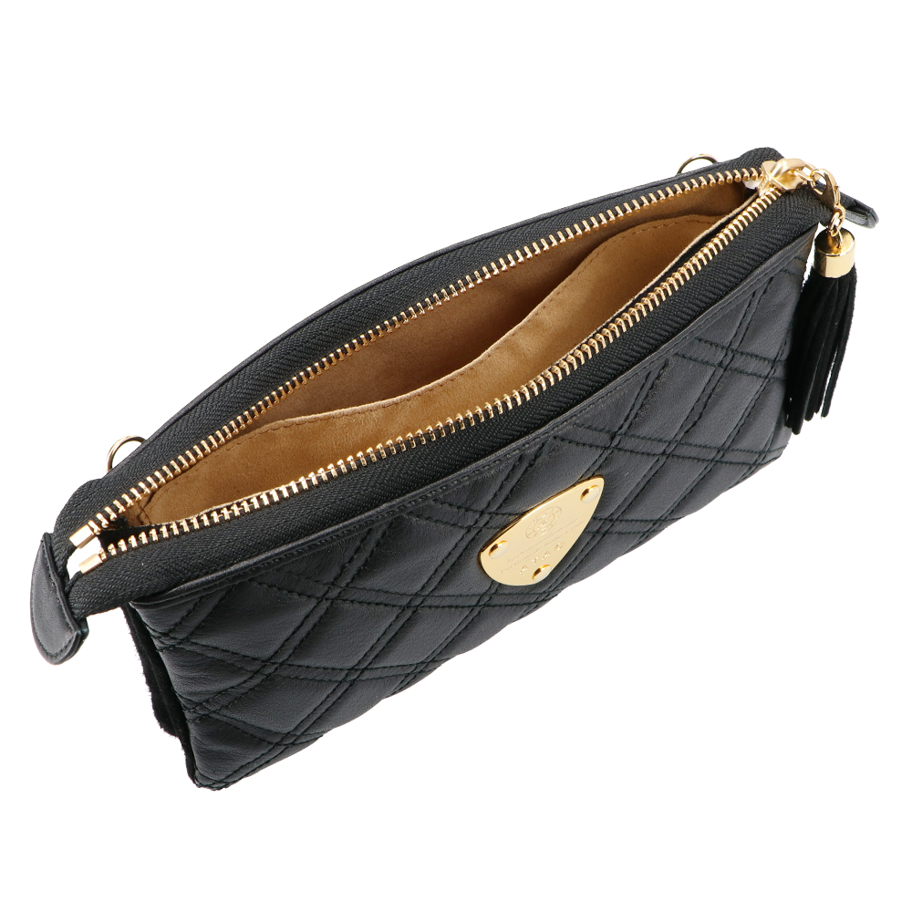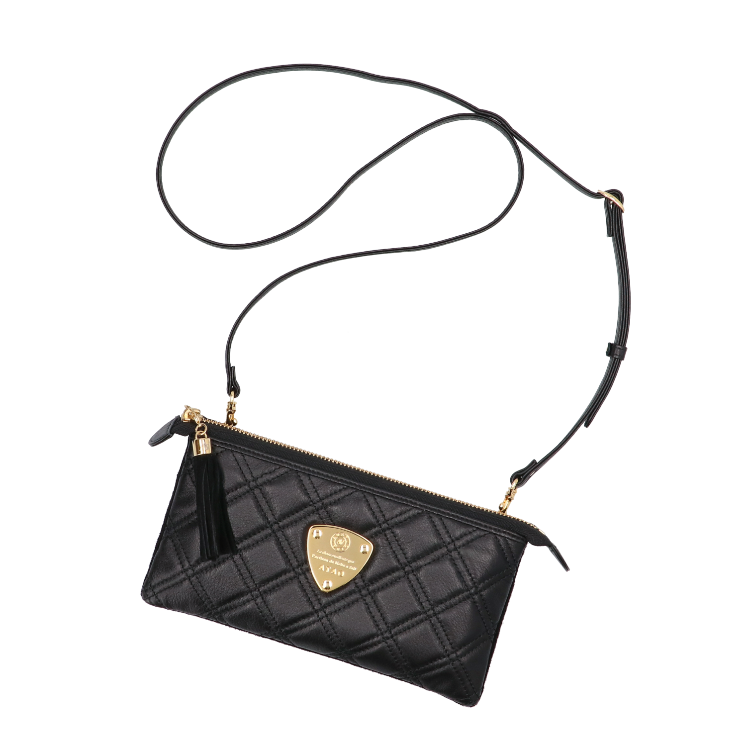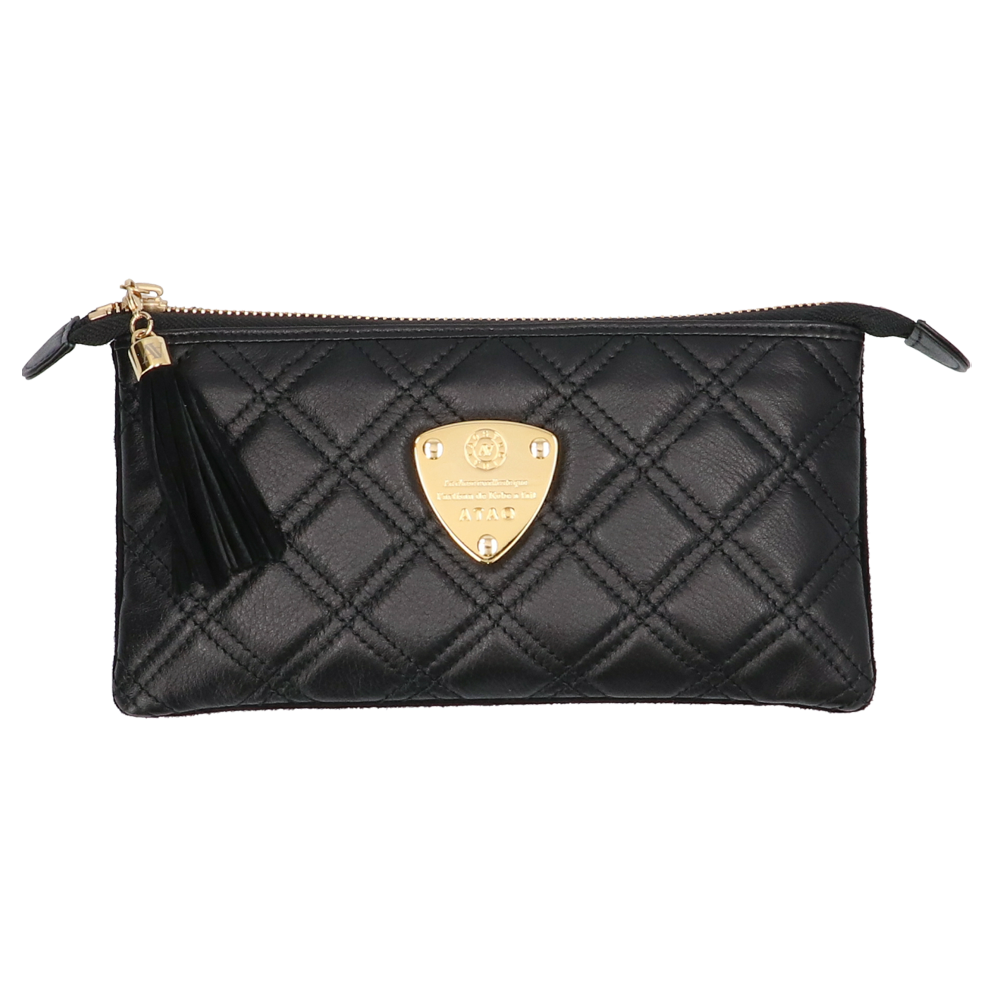 ゛運命のダイヤモンド“がテーマの最高級キルティングレザーでお仕立てしたATAO(アタオ)(あたお)のお財布ポシェット『ブーブー/ブラックダイヤ』。(ウォレットポシェット)(クラッチバッグ)(肩掛け)(斜め掛け)(ショルダーバッグ)(マイクロバッグ)(お財布スマホポシェット)(牛革素材)(カウレザー)(キルティング)