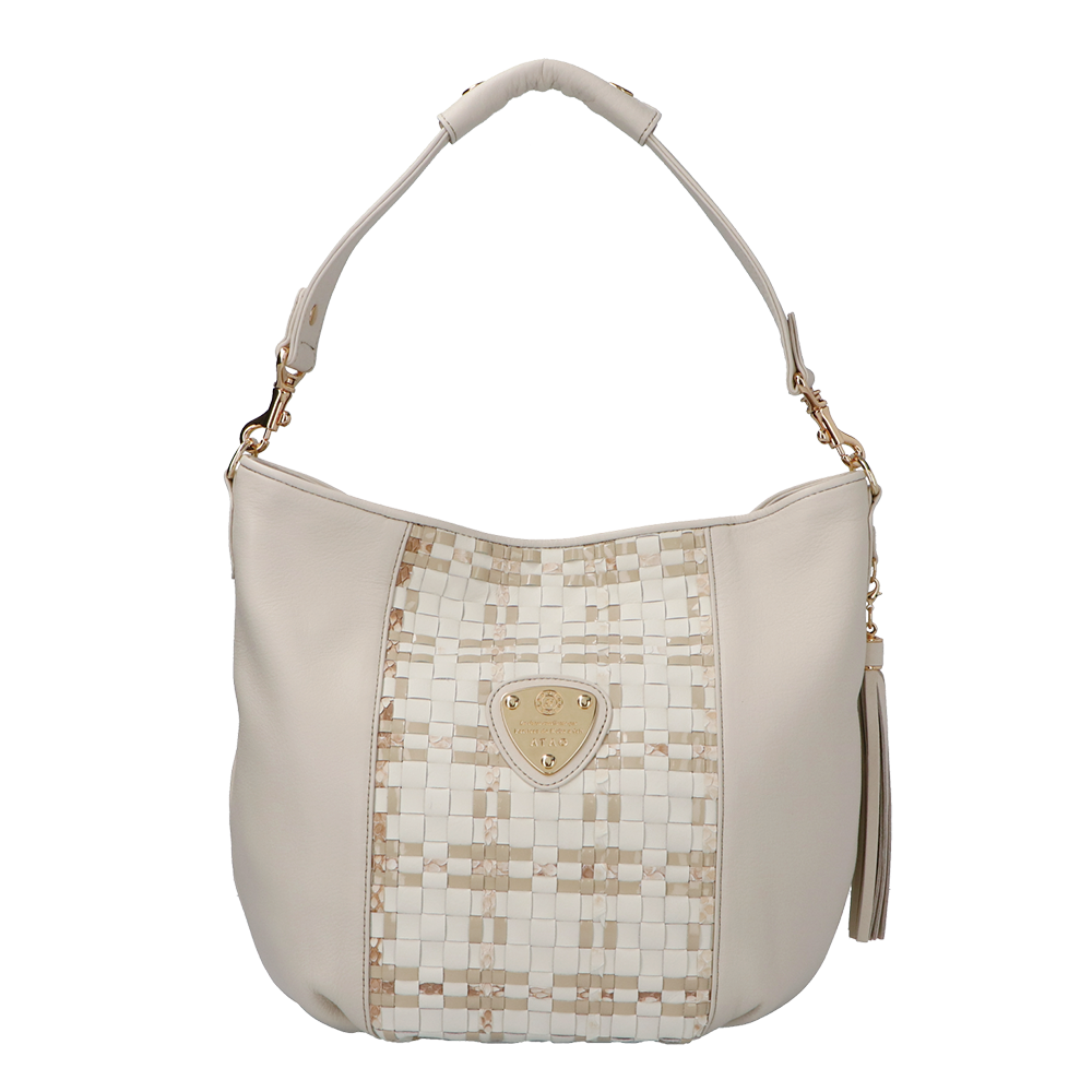 ATAO(アタオ)(あたお)の記念すべき5周年を記念して誕生した3つの異なる素材を編み込んだ素材”ルーク”シリーズに、ATAOの中でも根強い人気を誇るミディアムバッグ『キャンディ』が仲間入り。パイソン、エナメル、スムースレザーを、熟練の職人がじっくりと時間をかけてお作りしたこだわりの逸品。(ハンドバッグ)(ミディアムバッグ)(ミドルバッグ)(ショルダーバッグ)(肩がけ)(ワンショルダー)(ワンマイルバッグ)(カウレザー)(牛革素材)(キャンディ)(ルーク)