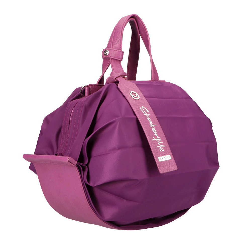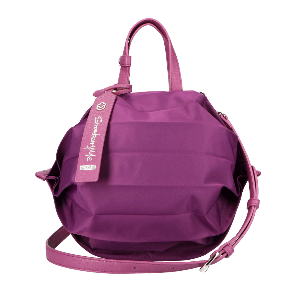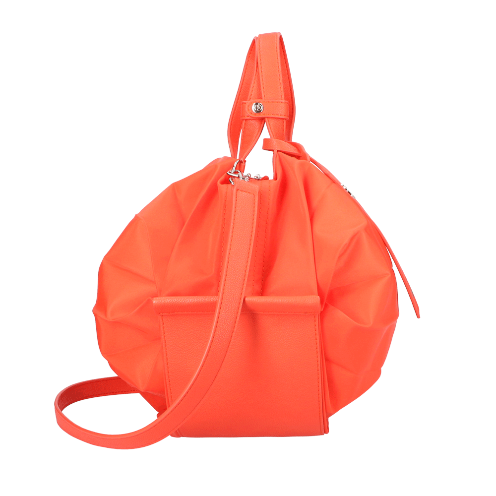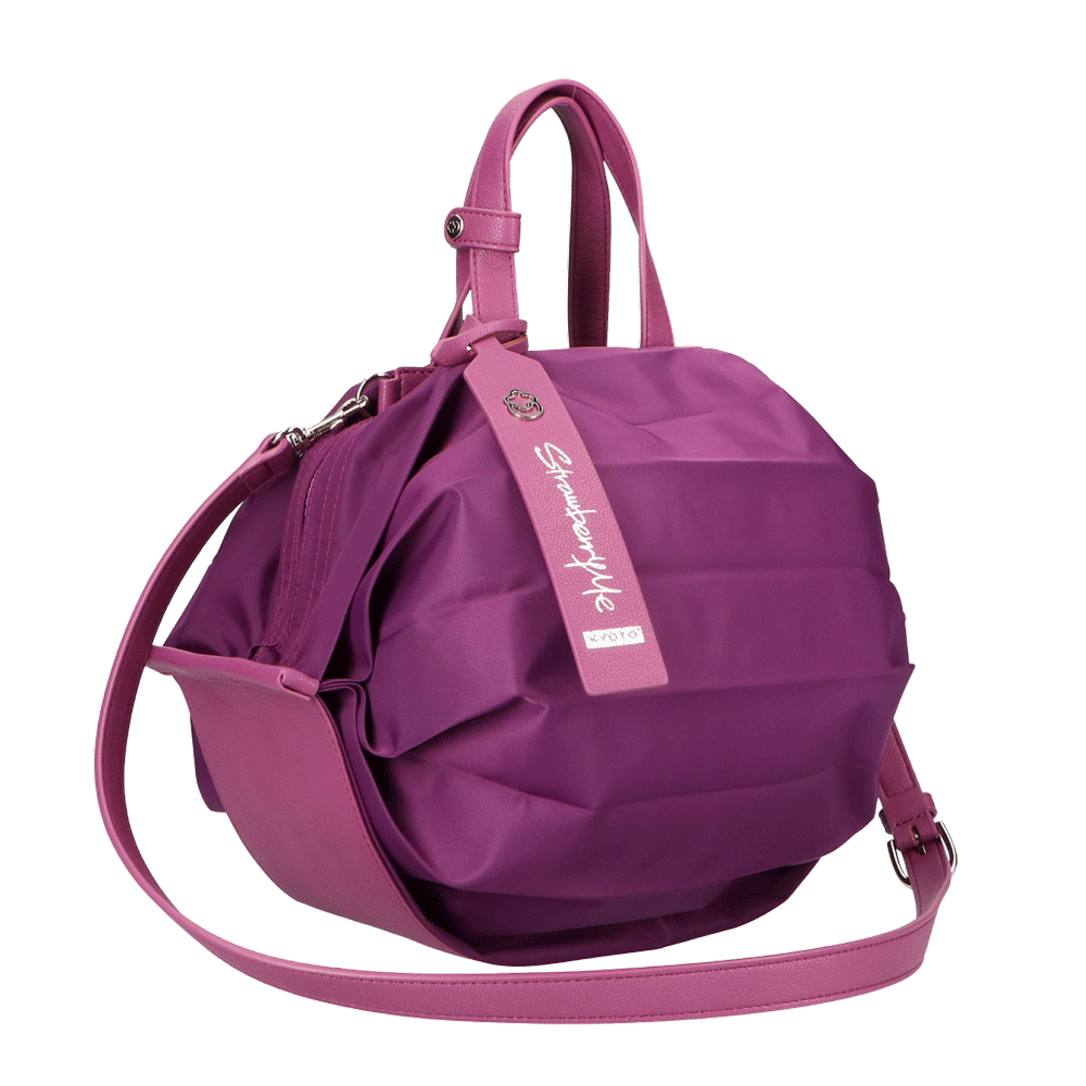 StrawberryMe(ストロベリーミー)(すとろべりーみー)の撥水ナイロン素材の軽量バッグ『チョウチン?M 』。(ちょうちん)(ハンドバッグ)(ショルダーバッグ)(肩がけ)(斜め掛け)(ミディアムバッグ)(ミドルバッグ)(撥水性)(ヴィーガンレザー)(サステナブル素材)(サスティナブル)京都の夜を美しく照らす「提灯」からインスパイアされたバッグ。