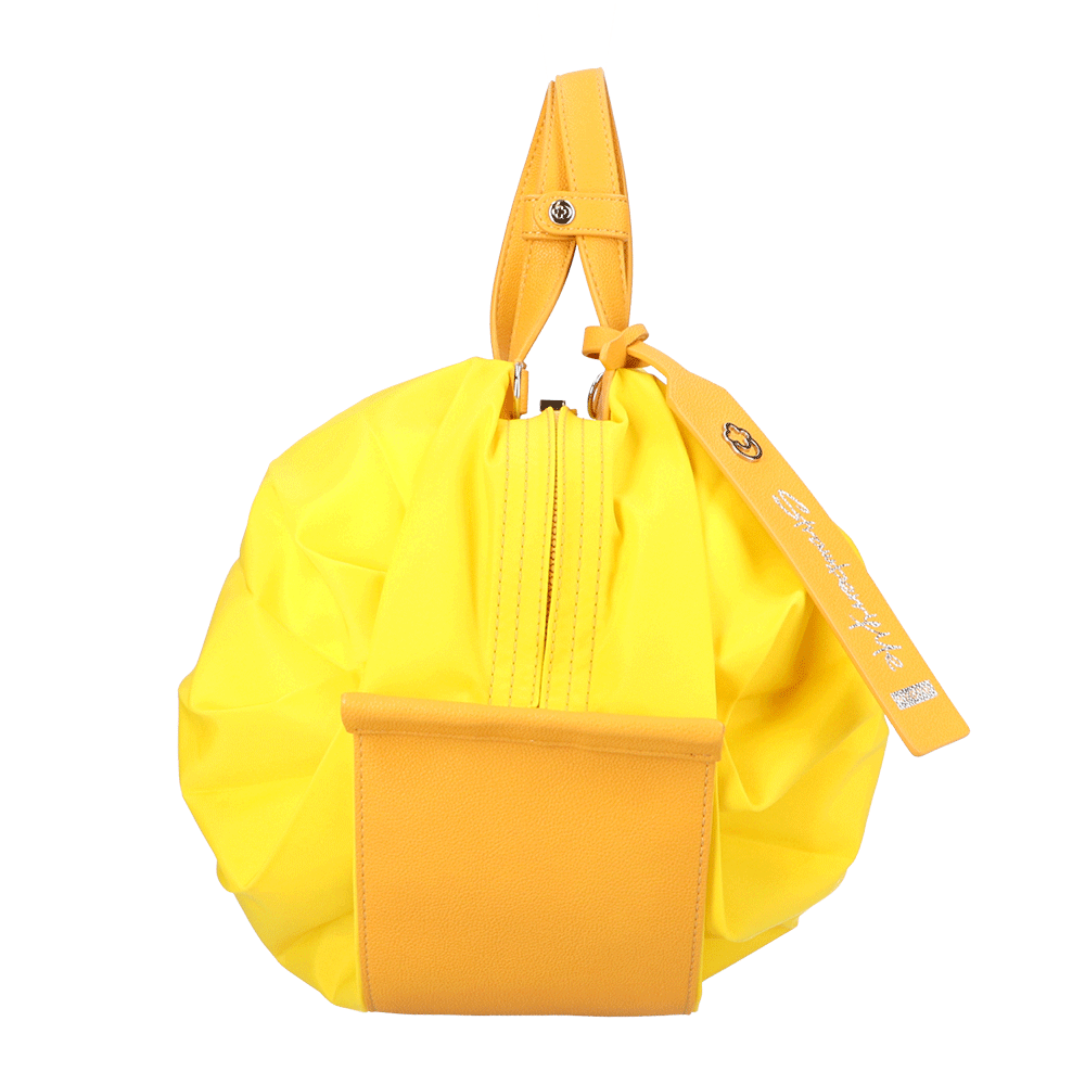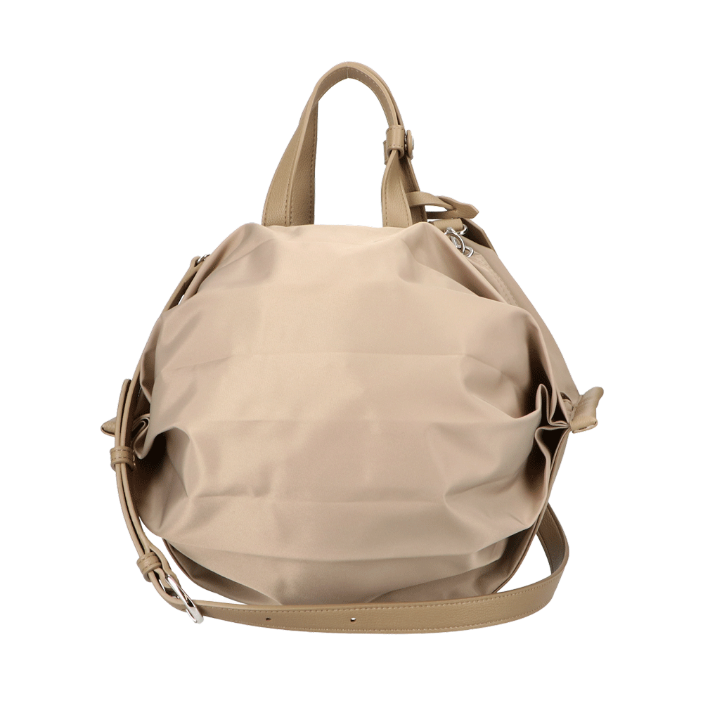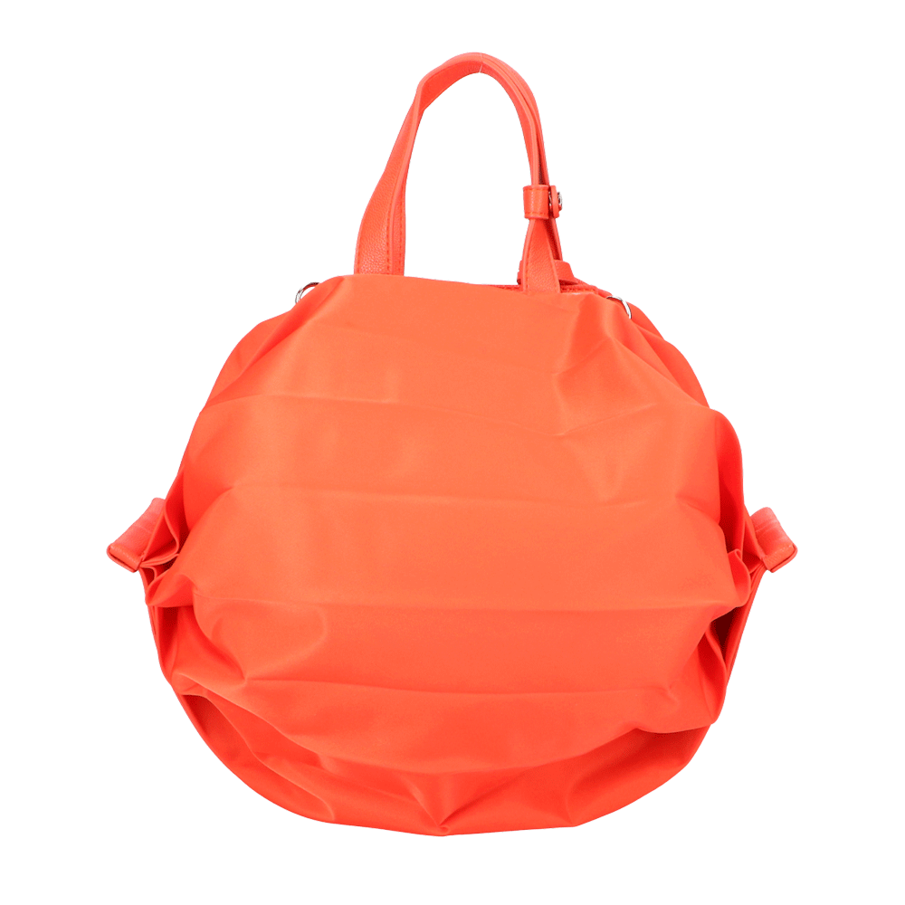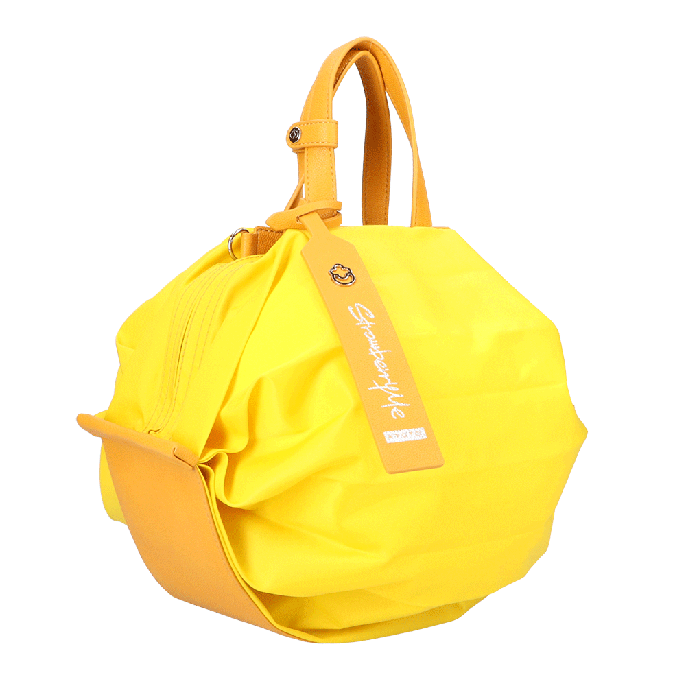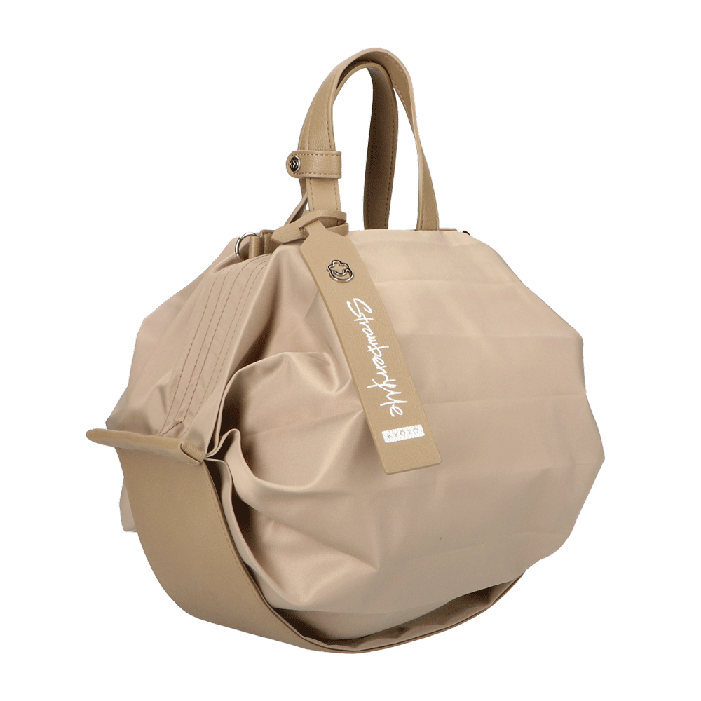 StrawberryMe(ストロベリーミー)(すとろべりーみー)の撥水ナイロン素材の軽量バッグ『チョウチン?M 』。(ちょうちん)(ハンドバッグ)(ショルダーバッグ)(肩がけ)(斜め掛け)(ミディアムバッグ)(ミドルバッグ)(撥水性)(ヴィーガンレザー)(サステナブル素材)(サスティナブル)京都の夜を美しく照らす「提灯」からインスパイアされたバッグ。