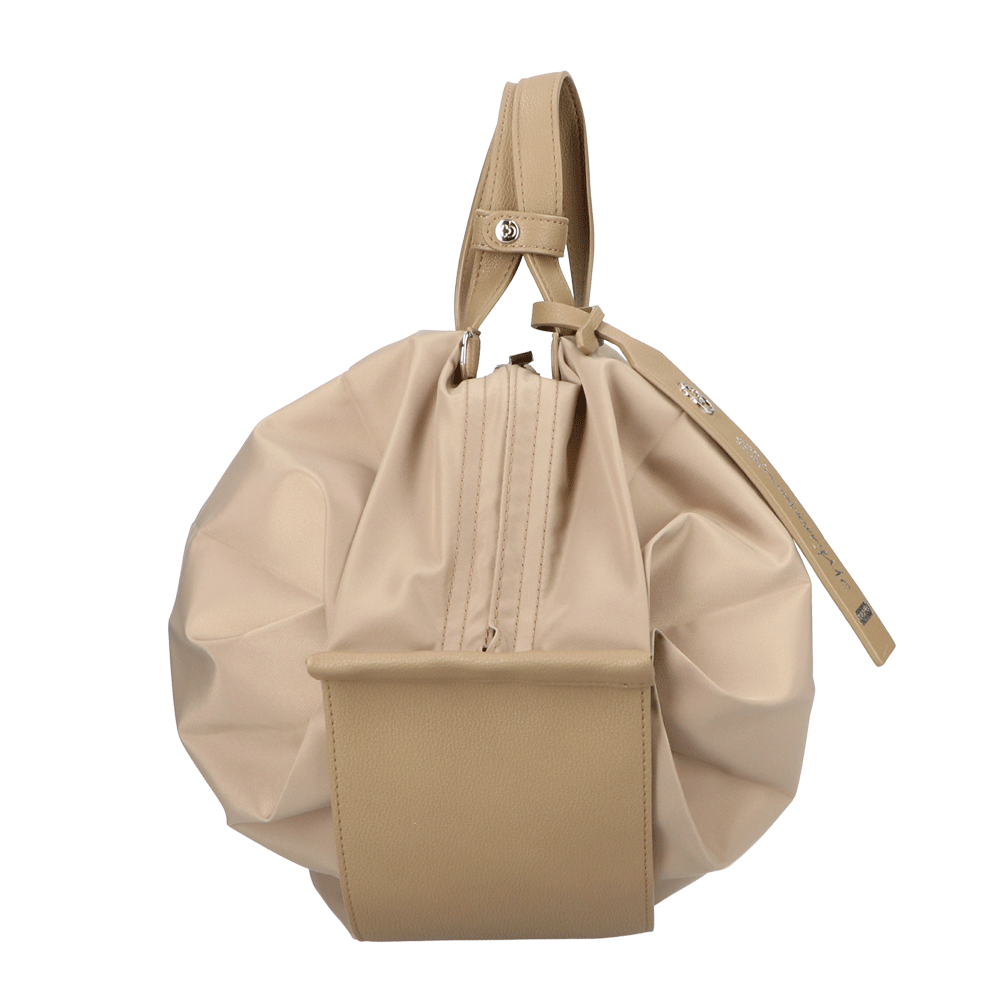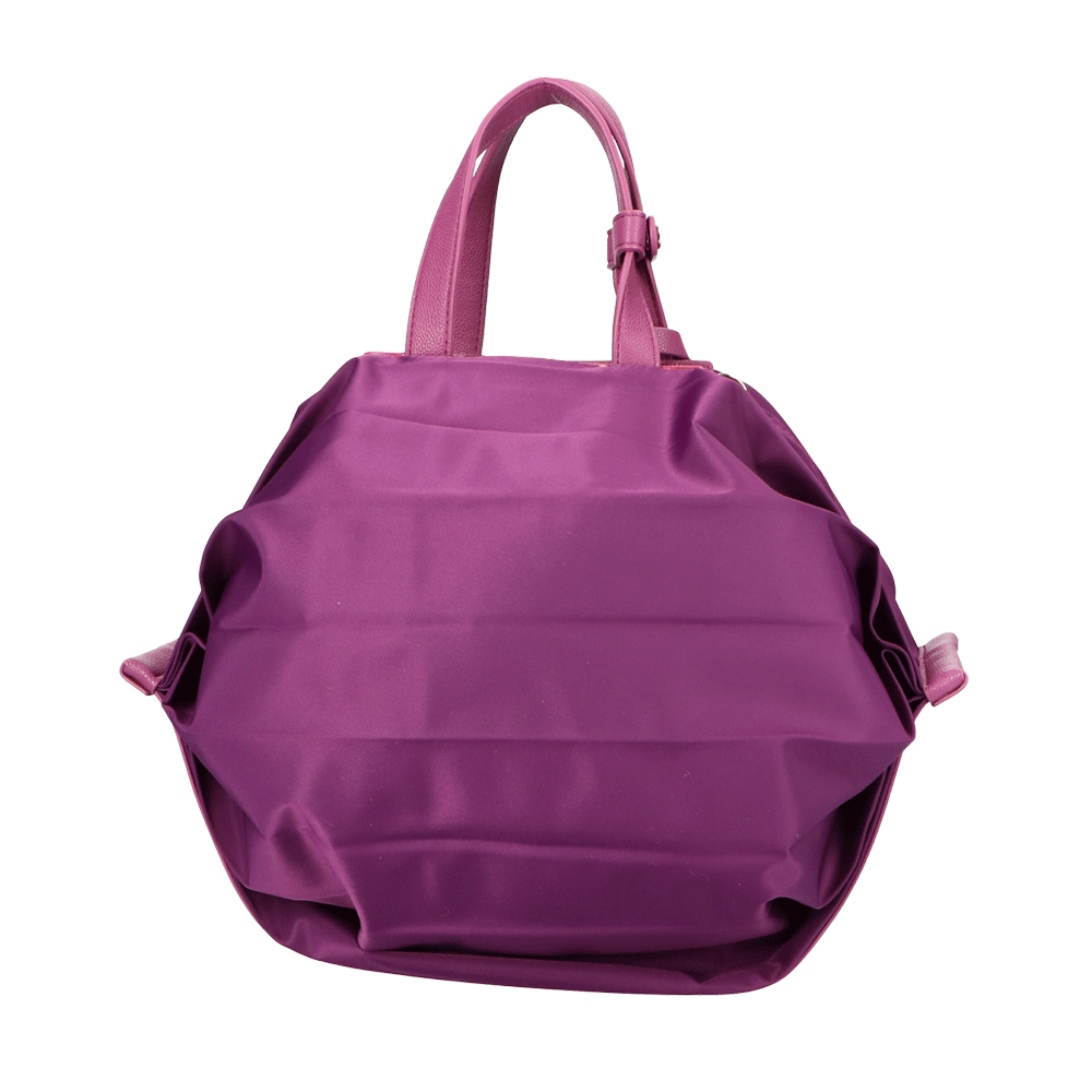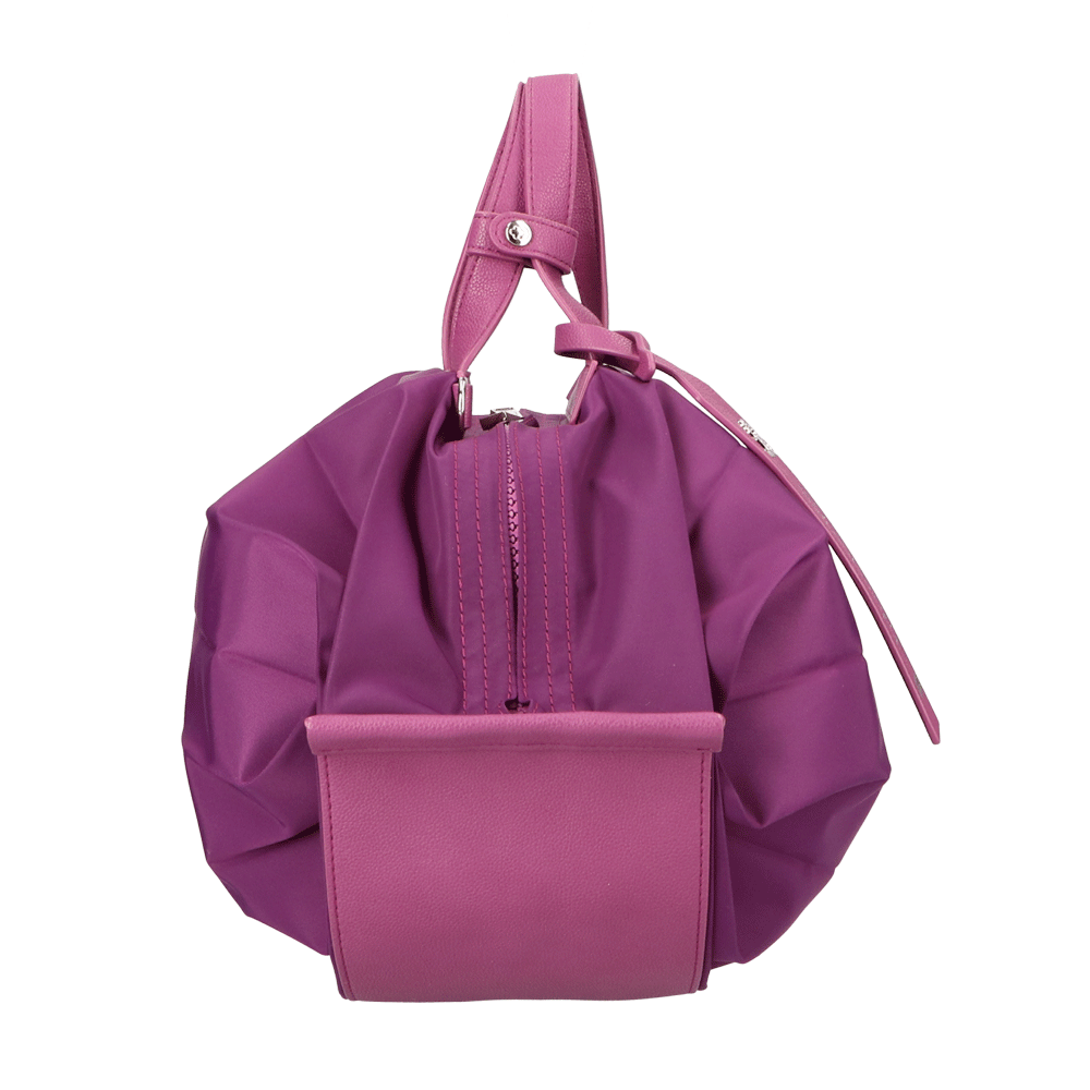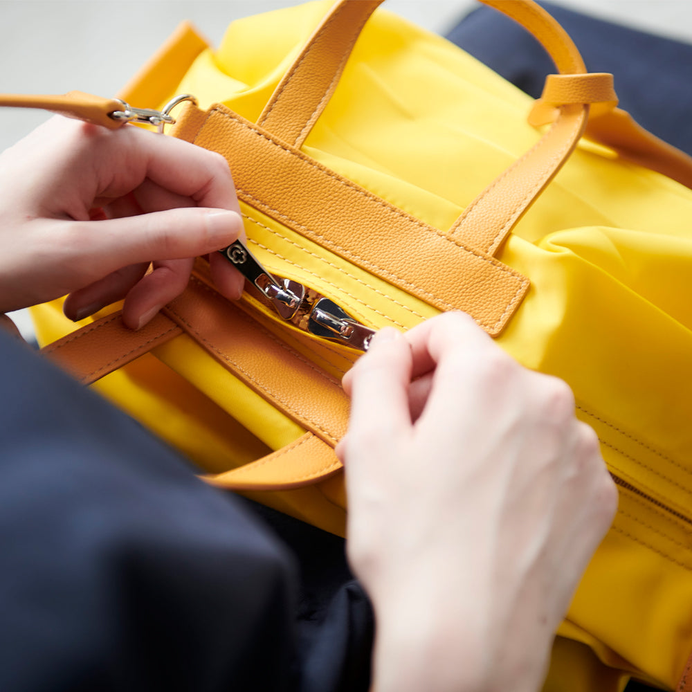 StrawberryMe(ストロベリーミー)(すとろべりーみー)の撥水ナイロン素材の軽量バッグ『チョウチン?M 』。(ちょうちん)(ハンドバッグ)(ショルダーバッグ)(肩がけ)(斜め掛け)(ミディアムバッグ)(ミドルバッグ)(撥水性)(ヴィーガンレザー)(サステナブル素材)(サスティナブル)京都の夜を美しく照らす「提灯」からインスパイアされたバッグ。