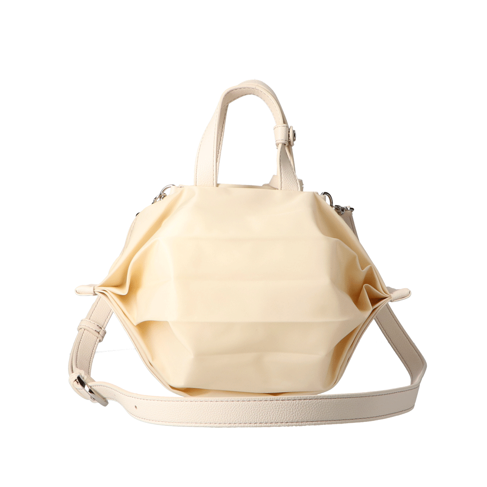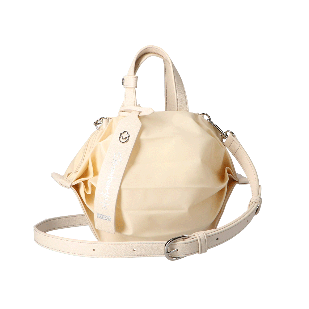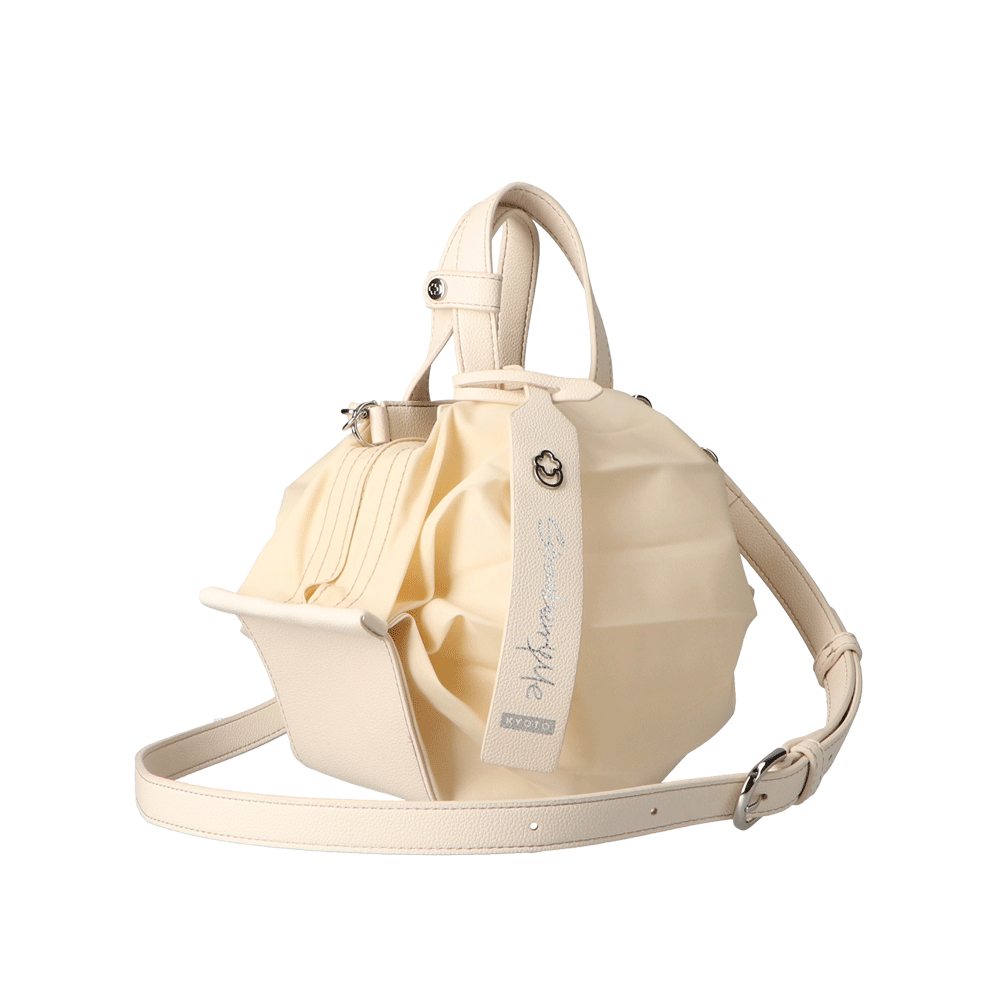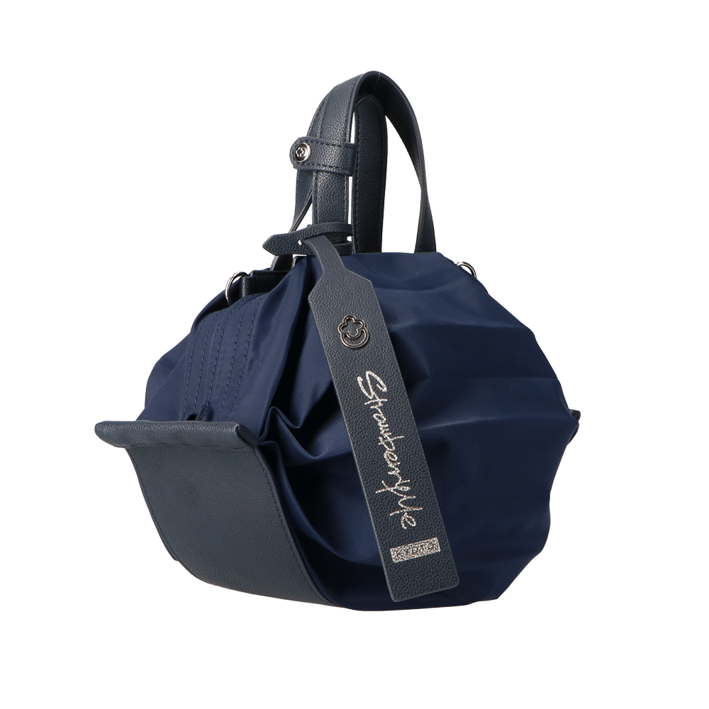 StrawberryMe(ストロベリーミー)(すとろべりーみー)の撥水ナイロン素材の軽量バッグ『チョウチン?S 』。(ちょうちん)(ハンドバッグ)(ショルダーバッグ)(ミニバッグ)(ミディアムバッグ)(ミドルバッグ)(ヴィーガンレザー)(サステナブル素材)(サスティナブル)(肩がけ)(斜め掛け)(撥水性)京都の夜を美しく照らす「提灯」からインスパイアされたバッグ。(Sサイズ)