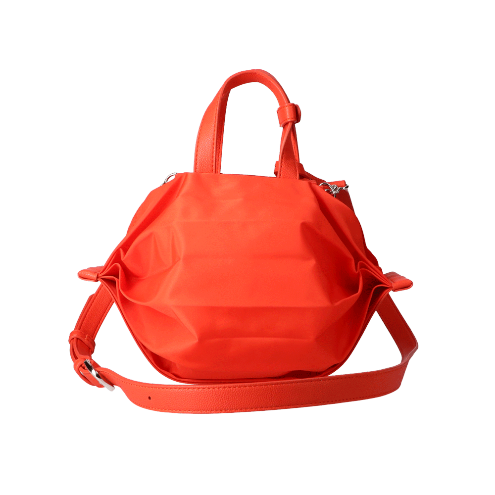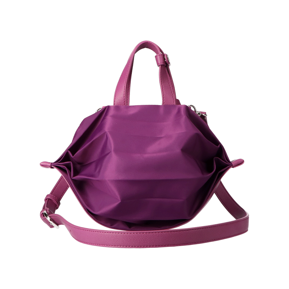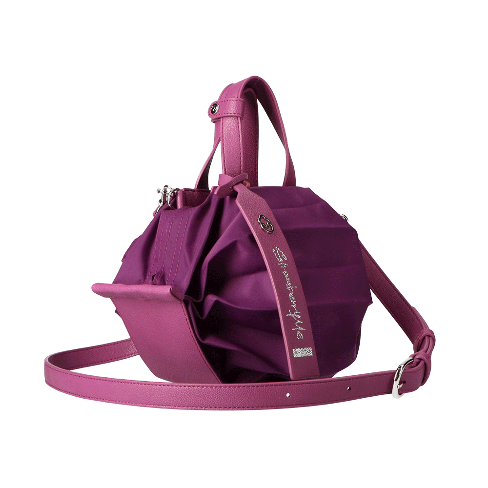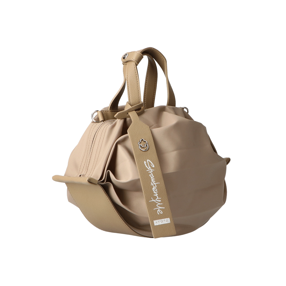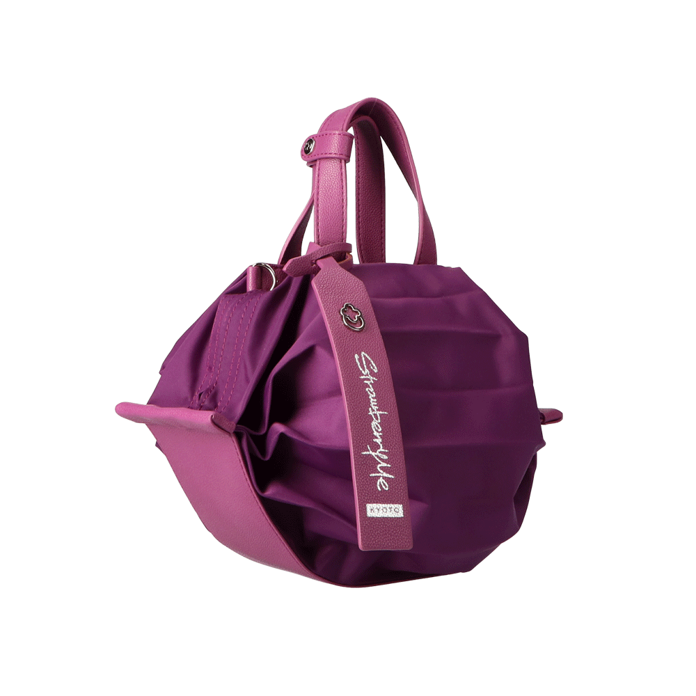 StrawberryMe(ストロベリーミー)(すとろべりーみー)の撥水ナイロン素材の軽量バッグ『チョウチン?S 』。(ちょうちん)(ハンドバッグ)(ミニバッグ)(ミディアムバッグ)(ミドルバッグ)(ショルダーバッグ)(斜め掛け)(肩がけ)(サステナブル素材)(サスティナブル)(ヴィーガンレザー)(撥水性)京都の夜を美しく照らす「提灯」からインスパイアされたバッグ。(Sサイズ)
