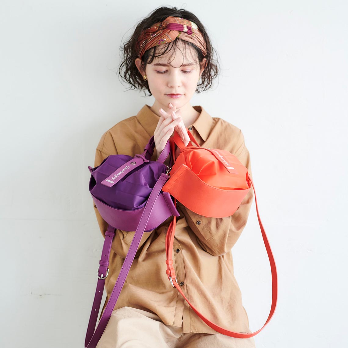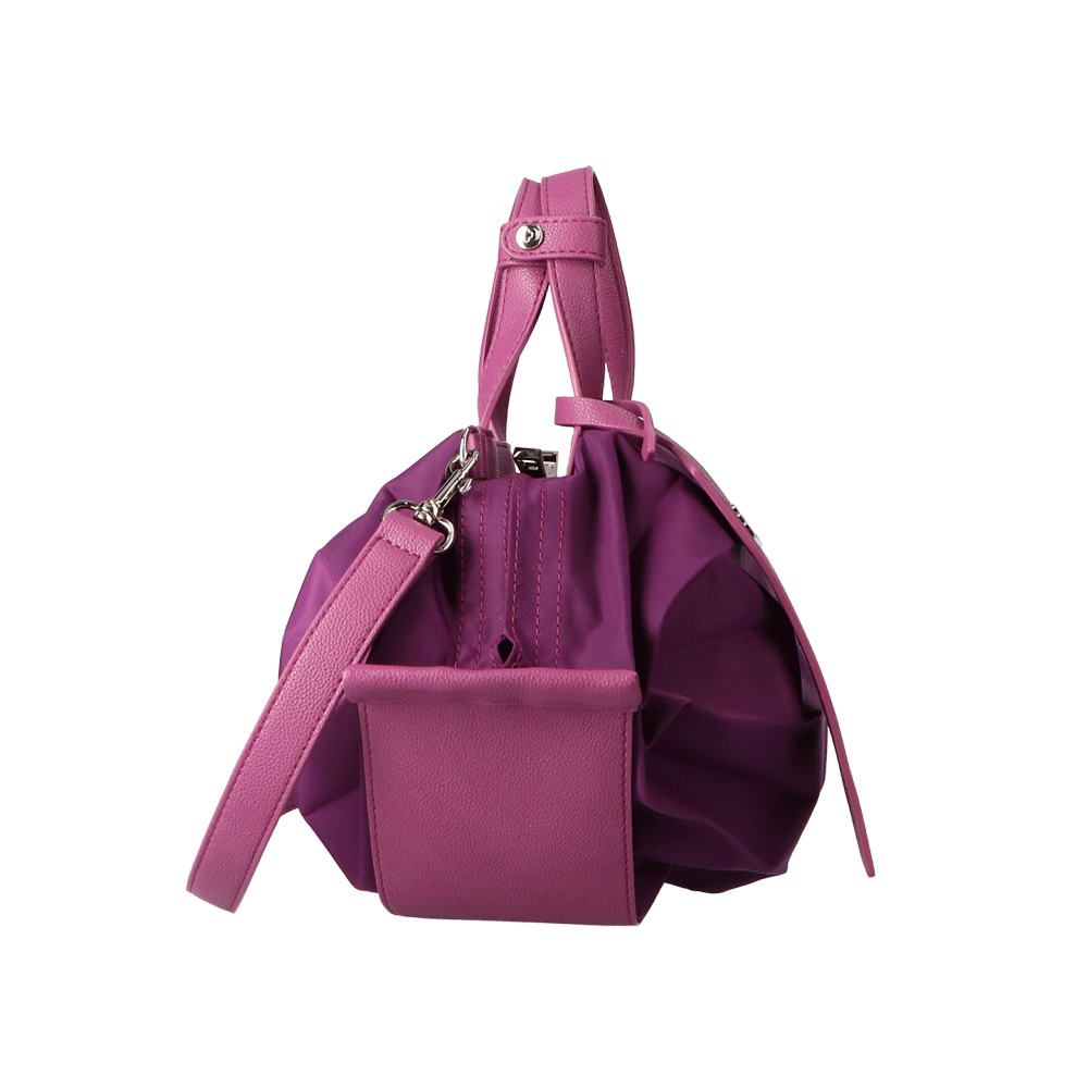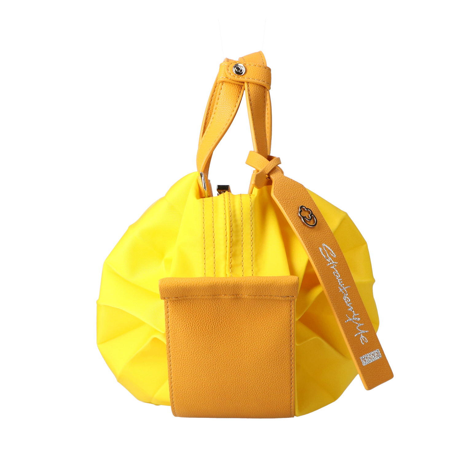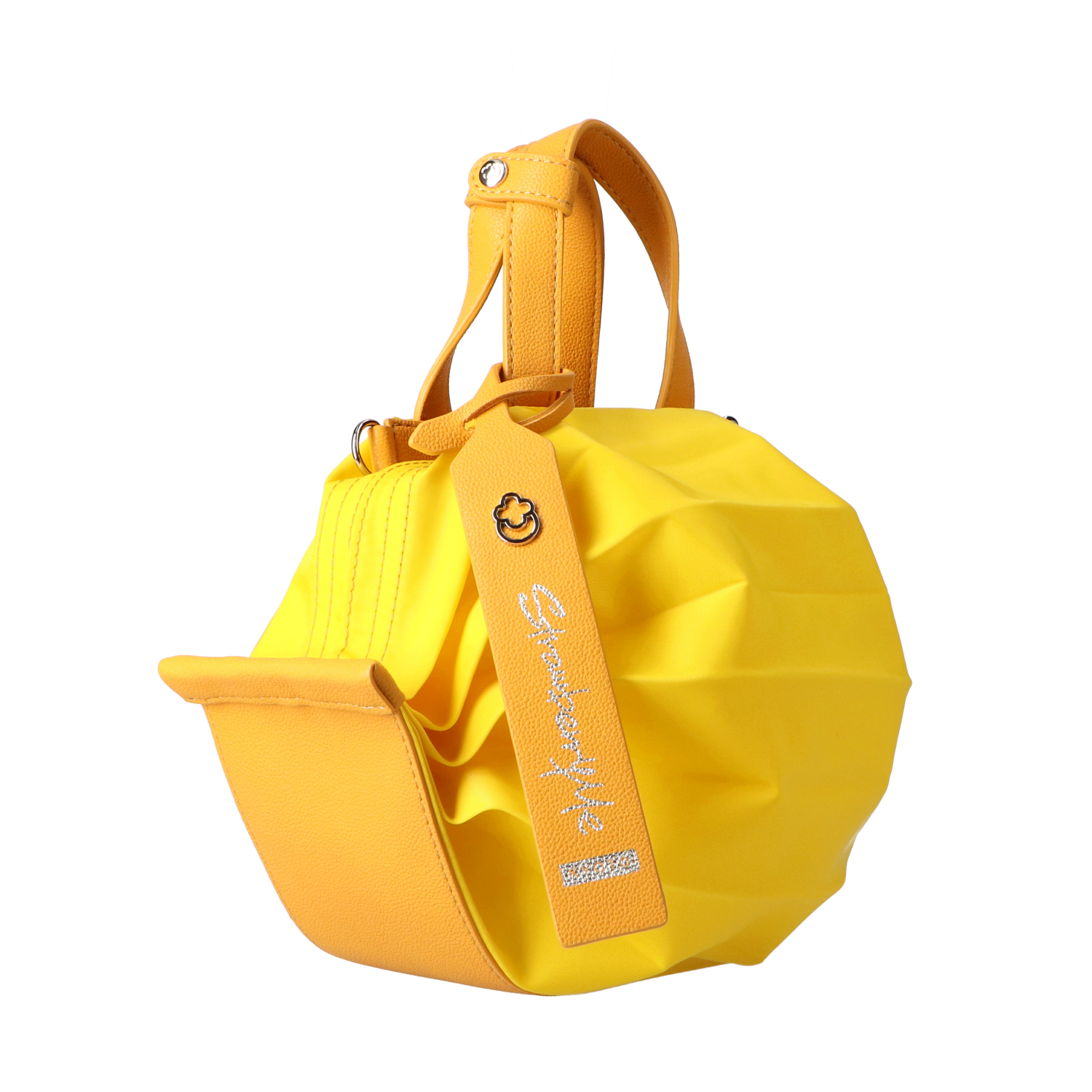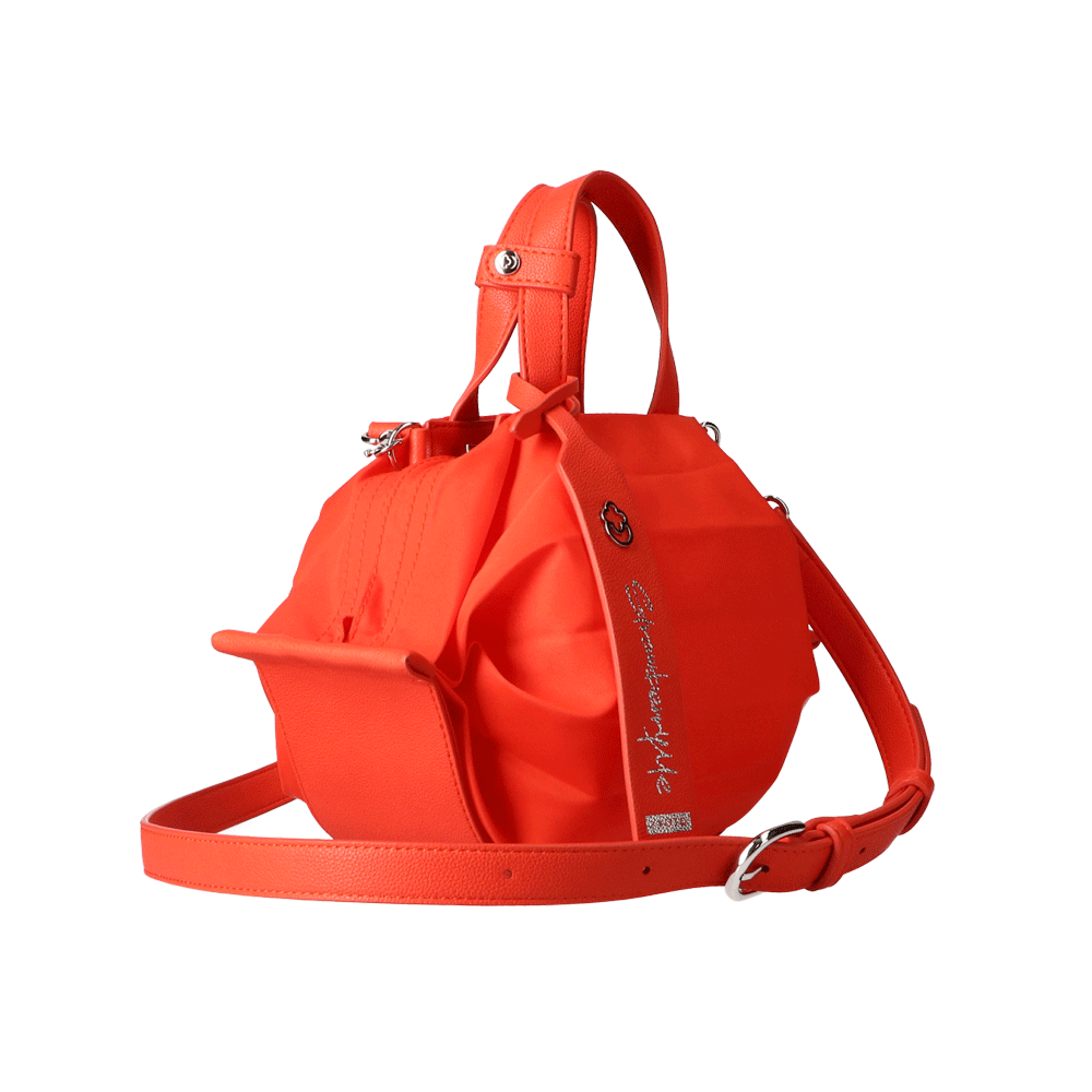 StrawberryMe(ストロベリーミー)(すとろべりーみー)の撥水ナイロン素材の軽量バッグ『チョウチン?S 』。(ちょうちん)(ハンドバッグ)(ミニバッグ)(ミディアムバッグ)(ミドルバッグ)(ショルダーバッグ)(斜め掛け)(肩がけ)(サステナブル素材)(サスティナブル)(ヴィーガンレザー)(撥水性)京都の夜を美しく照らす「提灯」からインスパイアされたバッグ。(Sサイズ)