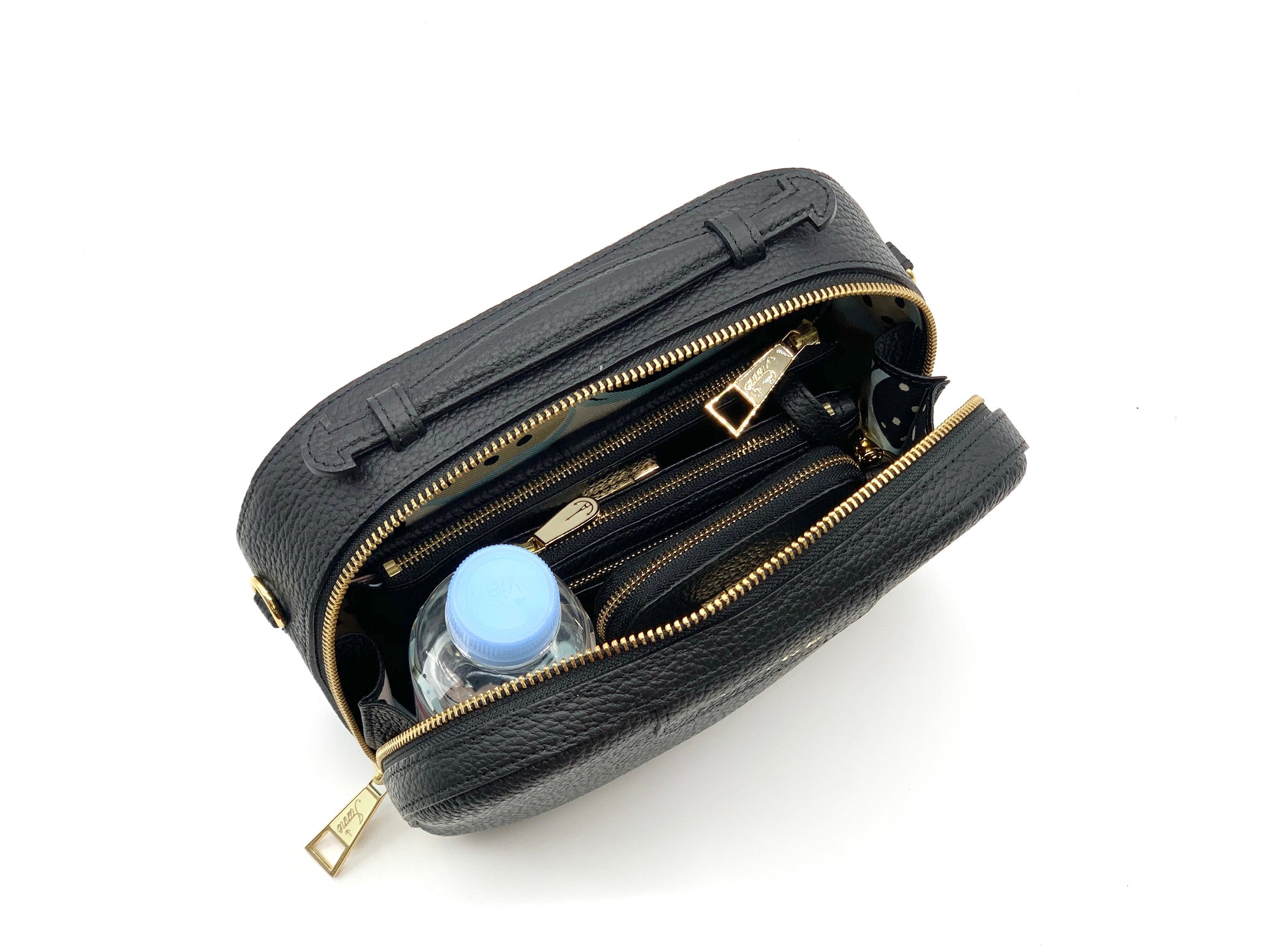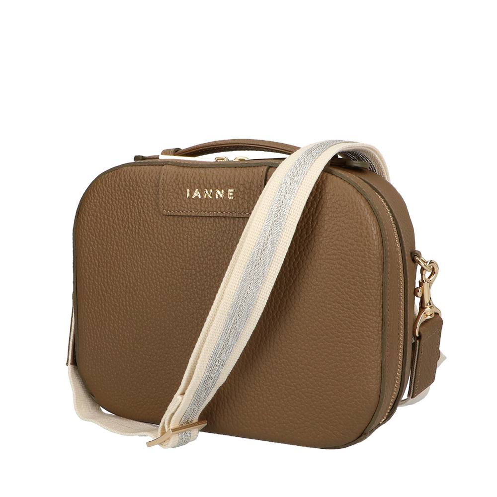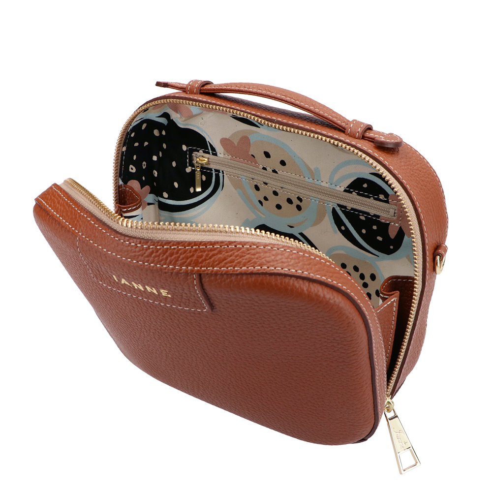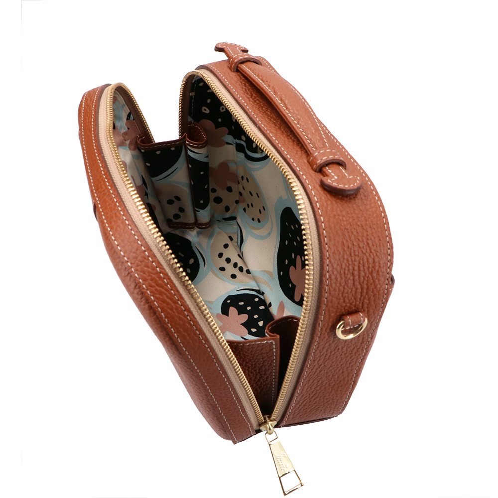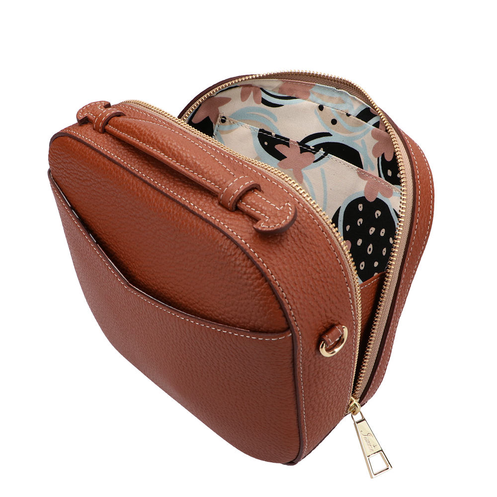 トランクケースをそのまま小さくしたような、丸いフォルムが愛らしい『シュペット(AGS)』。(ハンドバッグ)(ショルダーバッグ)(斜め掛け)(肩がけ)(ミディアムバッグ)(ミドルバッグ)(ミニバッグ)大きく口が開くメインファスナーを開けると、IANNEでお馴染みブラックベリーの内装がデザインされています。ハンドバッグでフォーマルに、付属のショルダーでアクティブに、コーディネートに合わせてさまざまな表情をお楽しみいただけます。(IANNE)(イアンヌ)(いあんぬ)(オリジナルカラー)(オリジナルレザー)(カウレザー)(牛革素材)(ファスナー)