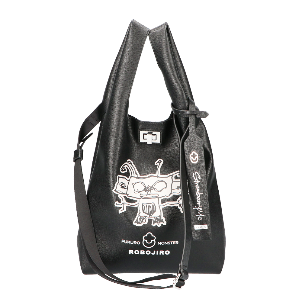 ILEMER(イルメール)(いるめーる)でお馴染みイーマリーの落書きをモチーフにしたStrawberryMe(ストロベリーミー)(すとろべりーみー)のバッグ(ハンドバッグ)(斜め掛け)(ショルダーバッグ)(ヴィーガンレザー)(サステナブル素材)(FUKUROMONSTER?M)『FUKURO?MONSTER/フクロ?モンスター』。ポーカーフェイスな表情に、ちょっぴり曲がった頭のアンテナ?が愛らしい“ロボジロー”のデザイン。(キャラクター)
