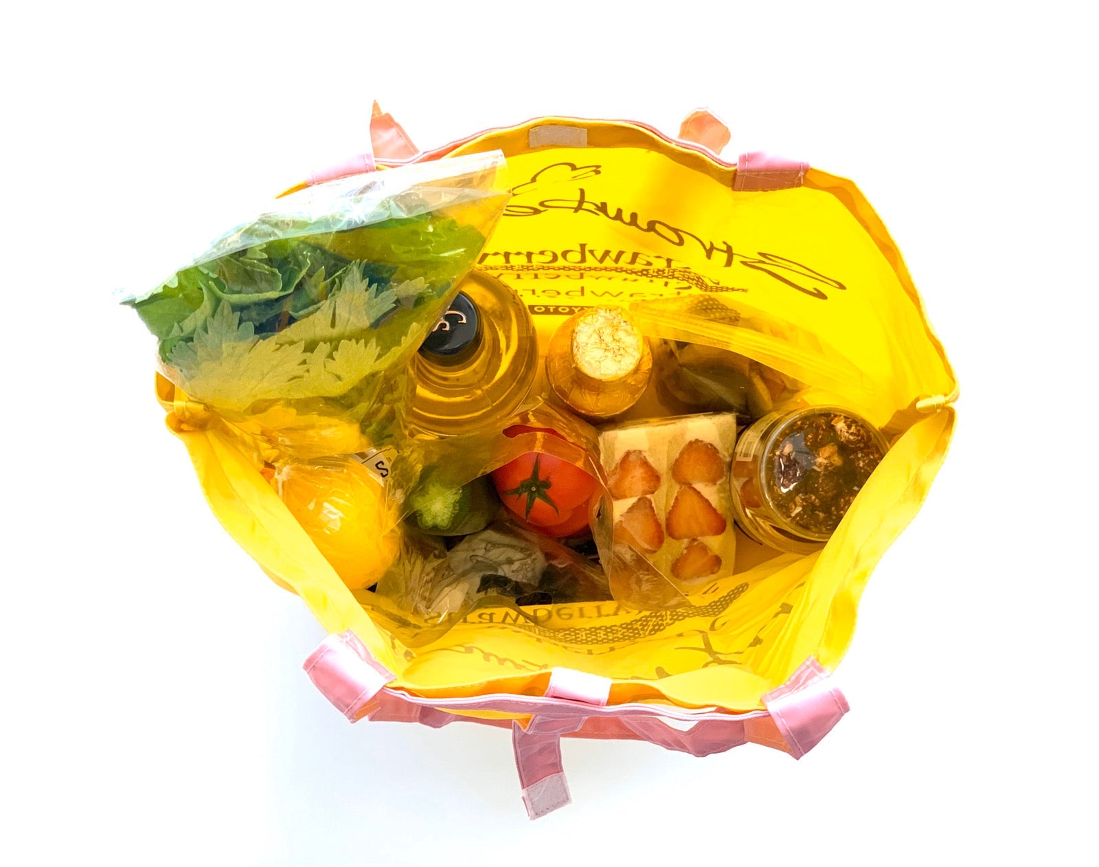 StrawberryMe(ストロベリーミー)(すとろべりーみー)のカラフルでポップな大容量A4エコバッグ『ICHIBA/イチバ』。(エコバッグ)(折りたたみ)(撥水性)(防水ナイロン)お買い物バッグに最適な防水ナイロンに、手持ち?肩がけができる2way仕様。(ショッピングバッグ)(ショルダーバッグ)(バイカラー)