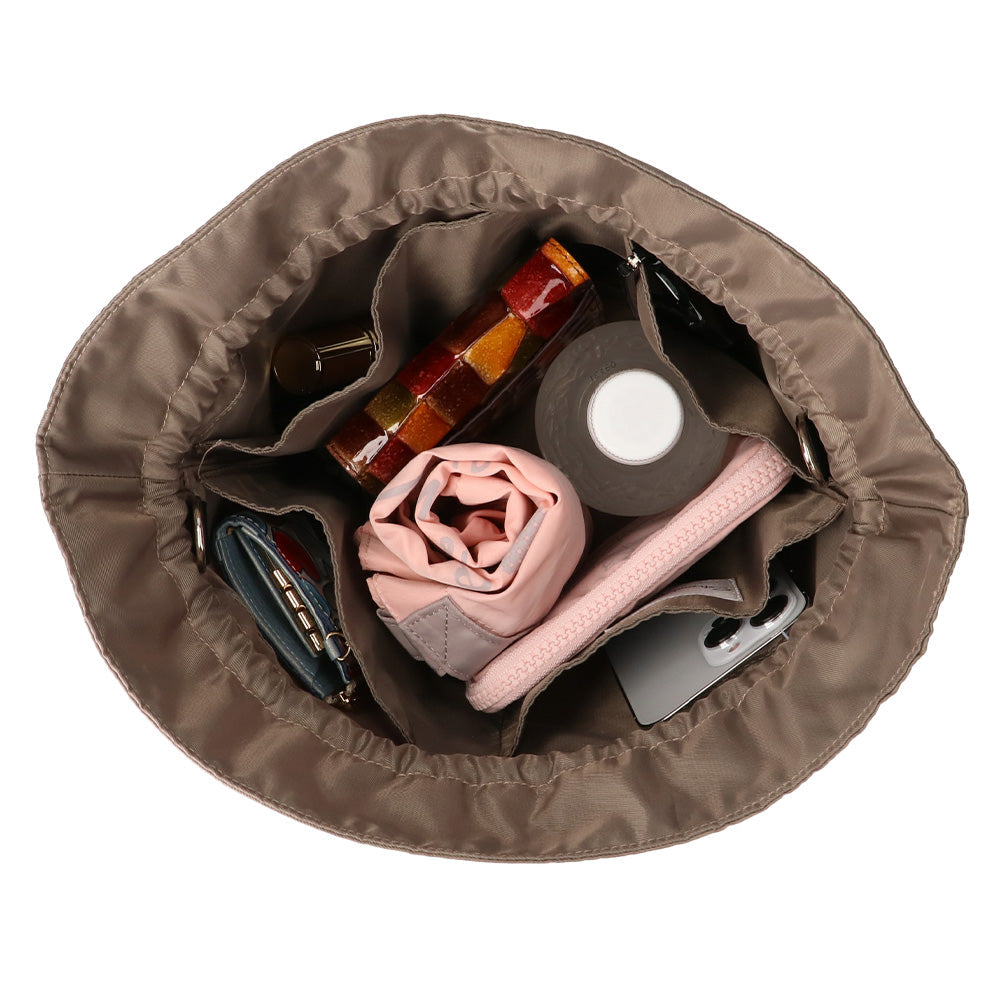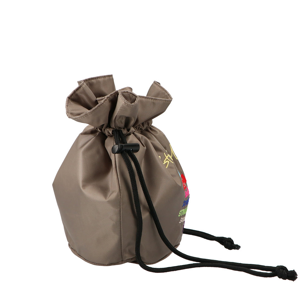 和のエッセンスを取り入れた京都らしさ漂う巾着型ポシェット「KINCHAKU(S)/キンチャク(S)」。しっかりとコシのあるナイロン素材とフロントには様々なフォントのブランドロゴが色鮮やかな刺繍によってデザインされています。キュッと絞ったシルエットが小ぶりで可愛く、和装にもピッタリ。ポシェットに最適なコンパクトサイズで、バッグを斜め掛けで楽しみたい方にもオススメです。巾着の紐をショルダーにして斜め掛けとしてはもちろん、スマホショルダーやインバッグとしてもお楽しみいただけます。