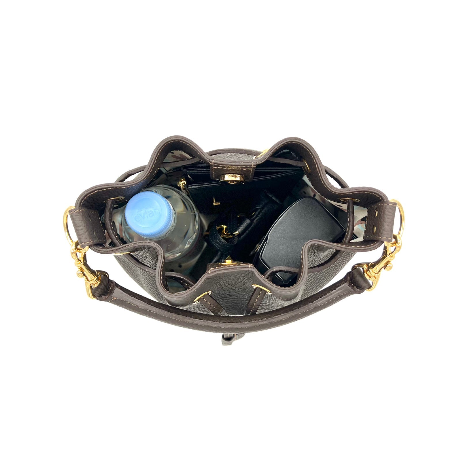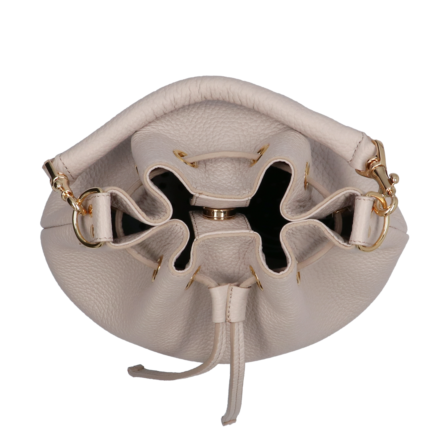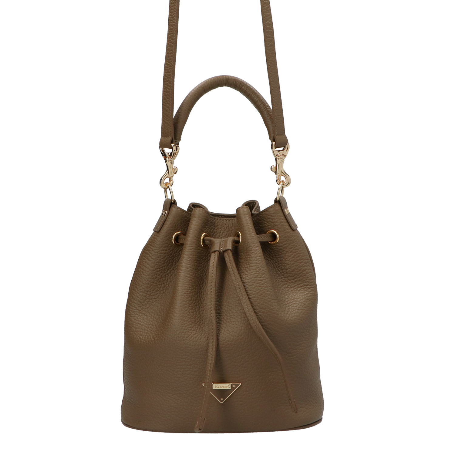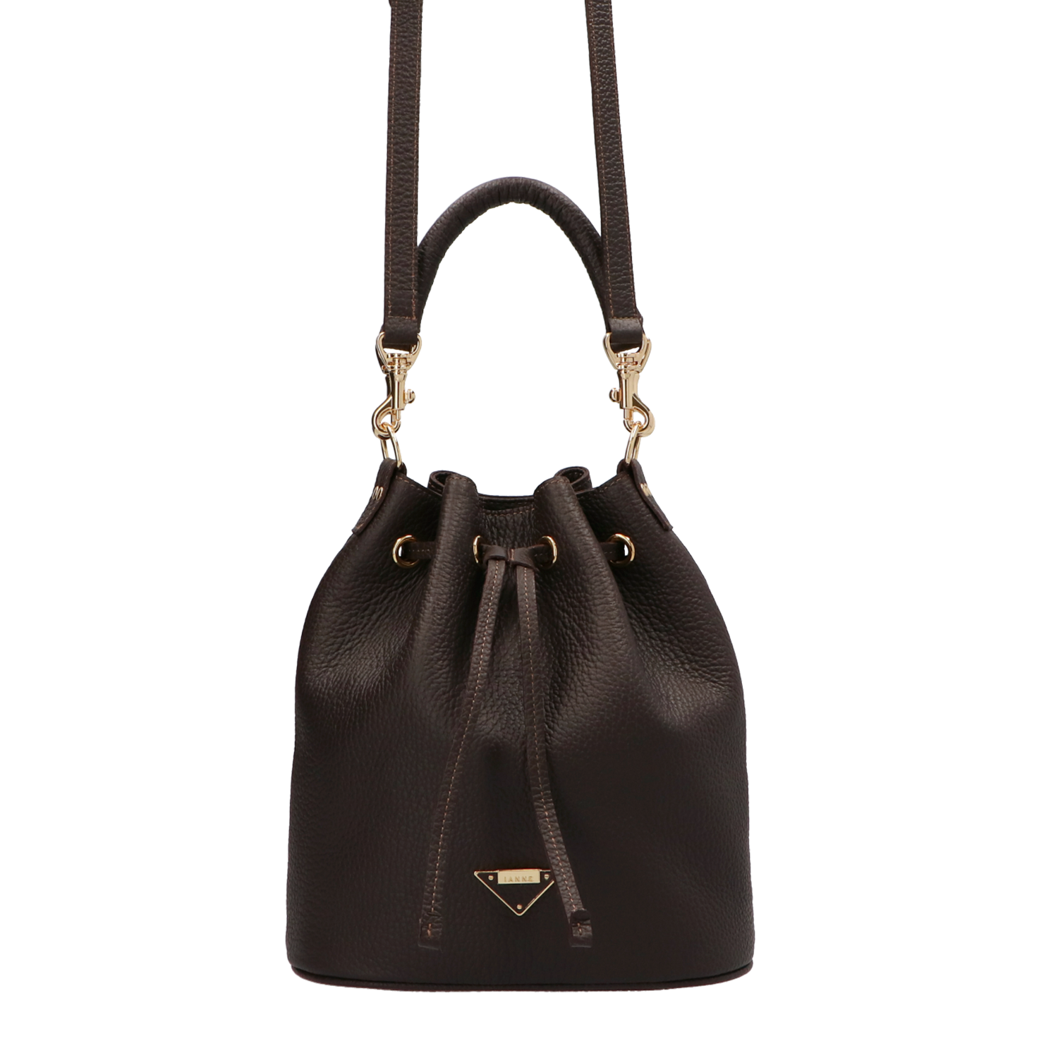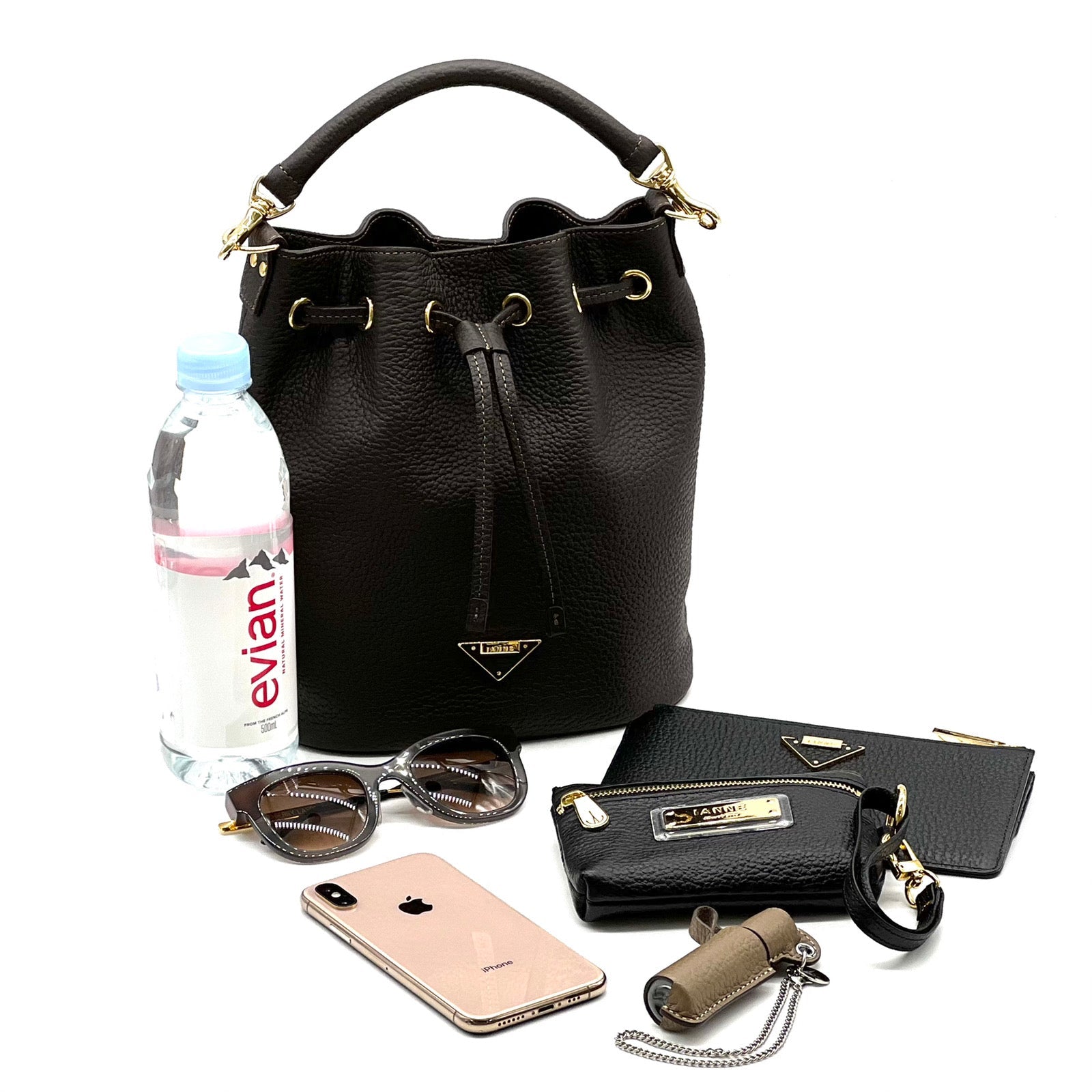 IANNE(イアンヌ)(いあんぬ)のモダンな縦型巾着バッグ『ルシール』。(ハンドバッグ)(ショルダーバッグ)(斜め掛け)(ミディアムバッグ)しっかりとコシもありしなやかなドレープは、上品さの中に大人の余裕を感じさせる抜け感をプラスしてくれます。(グリーシエル)(グリシエル)