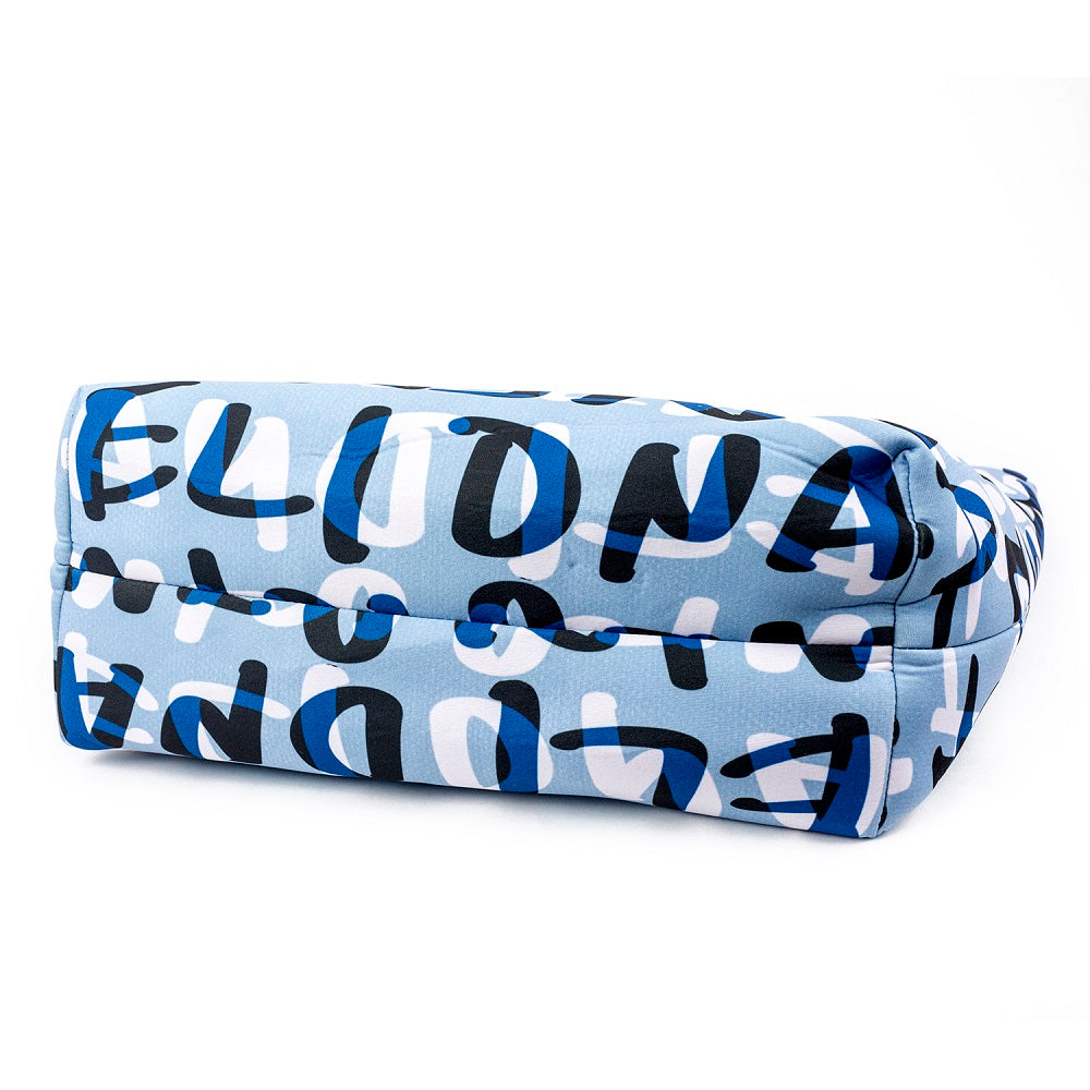 非常に軽くて柔らかい人気のエアリートート「LUNLUN」。(ルンルン)(るんるん)(ワンショルダー)(肩がけ)(トートバッグ)ウエットスーツに使用されるネオプレーン素材に手書きのILEMER(イルメール)(いるめーる)オリジナルのイラストがプリントされたトートバッグ。(イーマリー)(皇帝ペンギンKP)(ケーピー)(ブルー)(水色)