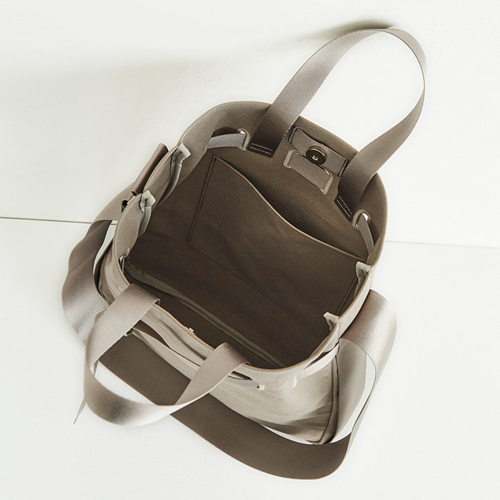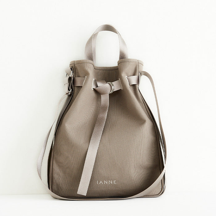 サブもメインも二役こなせるファブリックバッグ「マルゴ」。IANNEにも軽やかなファブリックバッグが登場。空気のようにふわっと軽やかなテキスタイルに繊細な光沢が上品なハンドル。フロントベルトはきっちりしめてもラフに垂らしても、バッグの口はきゅっと絞っても広げても、どんな表情も可愛く決まります。何かと荷物が増える夏には日傘にカーデ?飲み物など、嵩張る荷物もたっぷり収納できる安心のサイズ感。ハンドル持ちでスマホショルダーと2個持ちも、ハンドルをしまって斜め掛けやワンショルダーでも好みのスタイルをお楽しみください。絶妙なニュアンスカラーがインポートチックなパリのエッセンス感じるファブリックトートです。