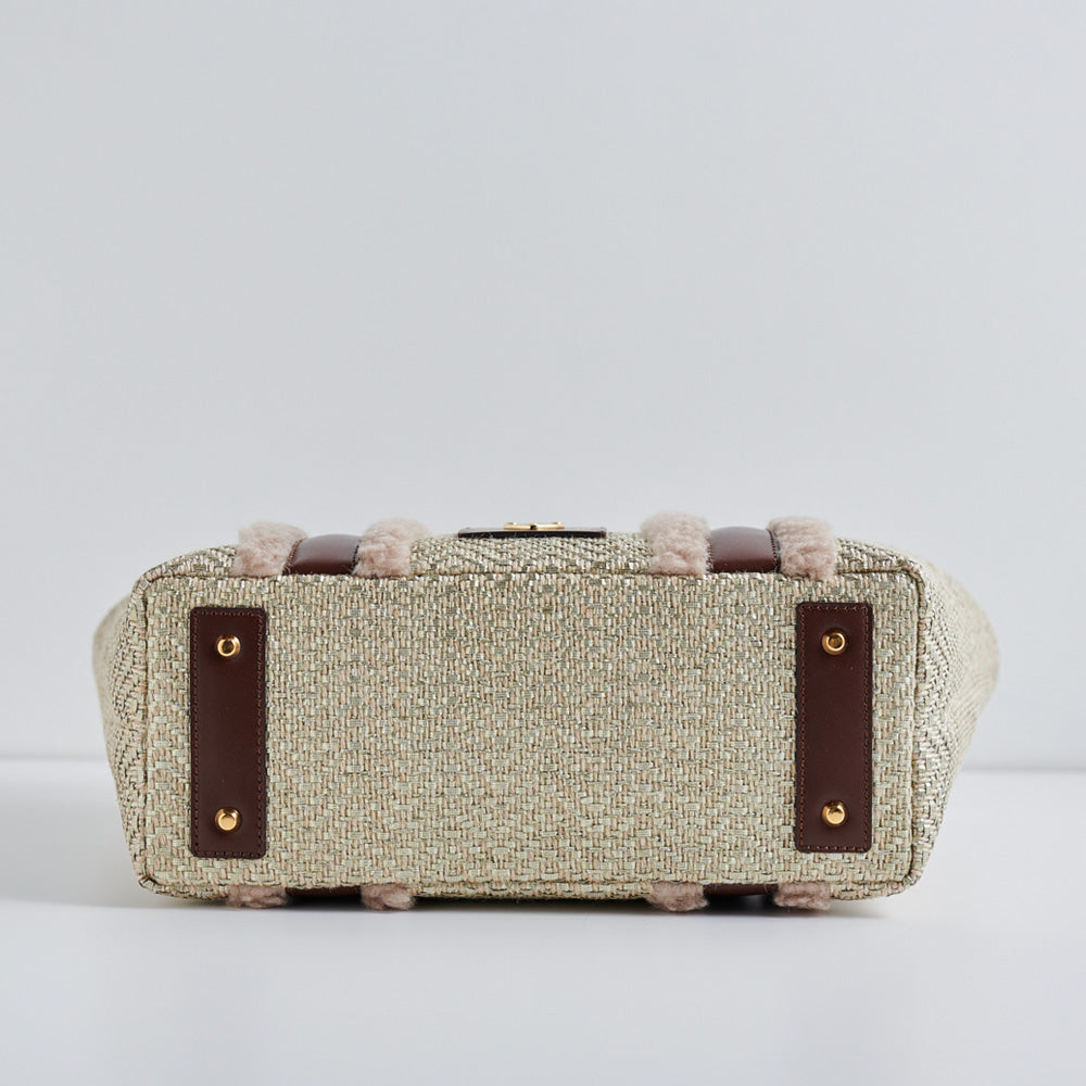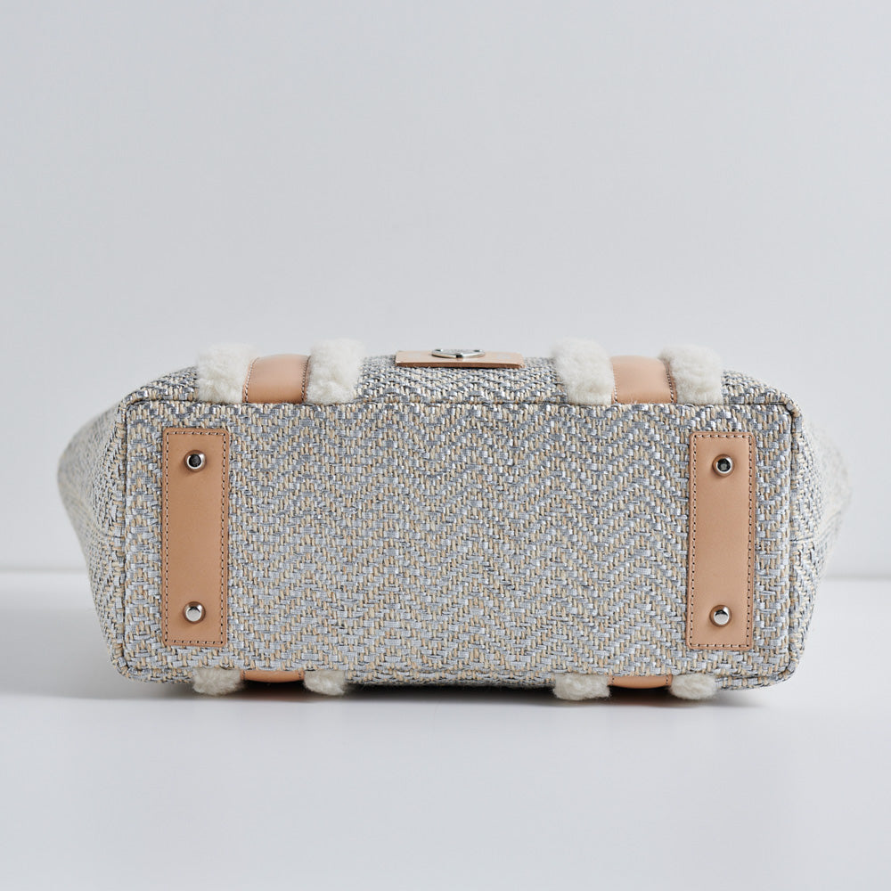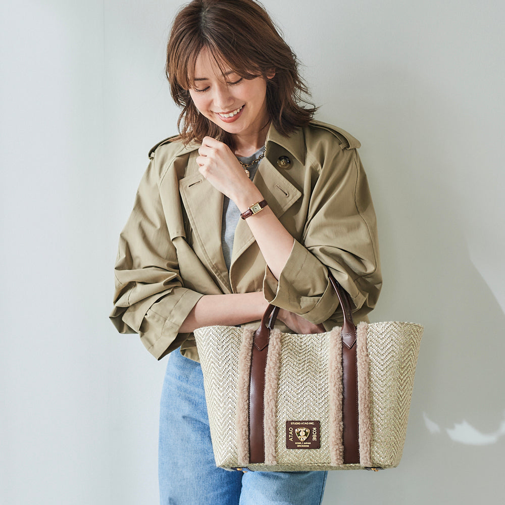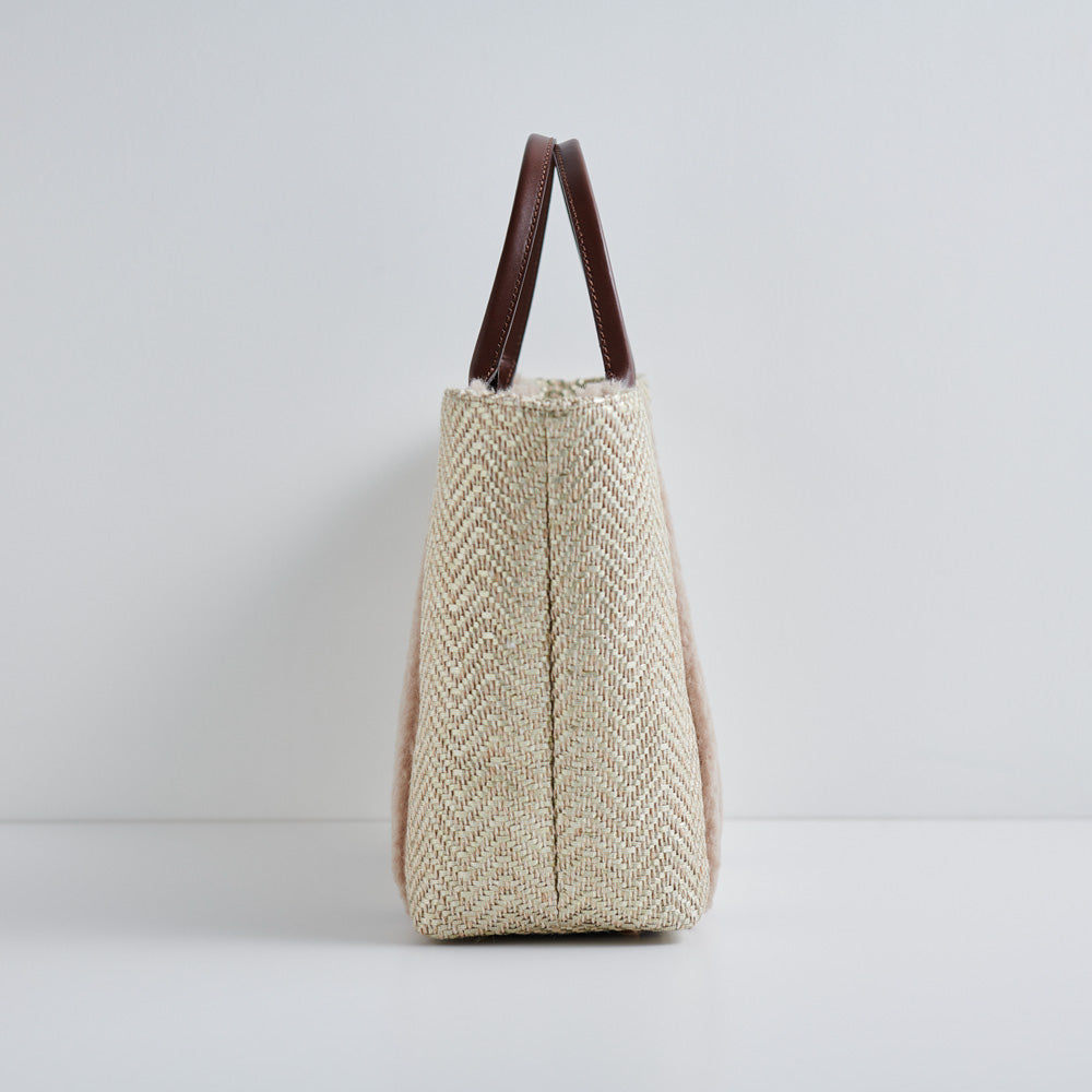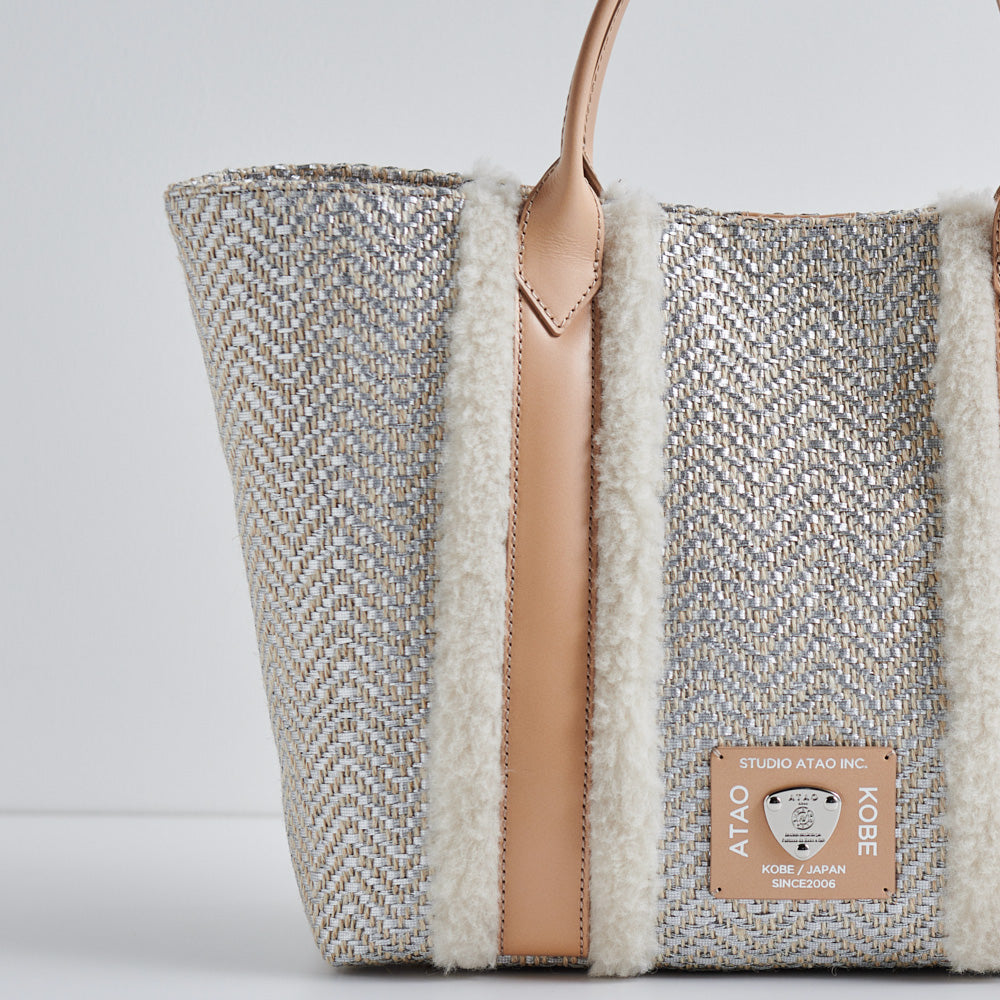 京都の職人が編み込んだ、ヘリンボーン柄のジュートバッグ「shiki」。ジュート素材に加え、心地よい優しい手触りのウール素材に、レザーのハンドルを組み合わせているので、シーズンレスでご使用いただけます。素材から縫製まで全て日本メーカーで育てた春夏秋冬お楽しみいただけるトートバッグです。カラーはハイニッケルの金具を使用したプラチナに、ゴールドの2色展開。ATAO(アタオ)(あたお)(トートバッグ)(ジュート素材)(麻)(軽量)(ハンドバッグ)(シキ)(shiki)(四季)(羊毛)(ウール)