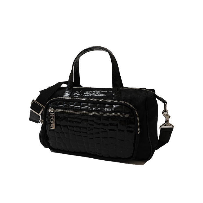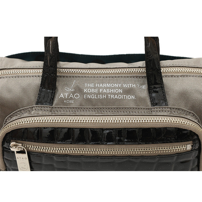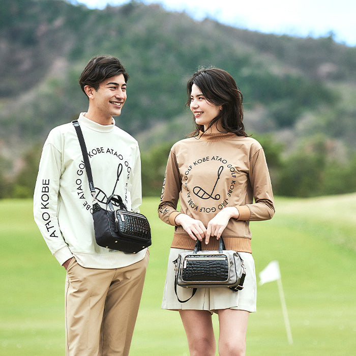 ゴルフブランドとして誕生したATAO GOLF。今季のシーズンでは、新ライン「スマルトシリーズ」。イタリアンレザーとナイロン素材を組み合わせ、晴れの日も雨の日も思うがままに。シンプルなアイテムトーンは、ゴルフプレーはもちろん日常でも愉しめます。どこでどのようにアイテムを取り入れるか、あなた次第。ここが原点であり、あたらしい日常への入り口です。上質で光沢感のあるイタリアのエナメルレザーとナイロンを組み合わせ、職人による手仕事で生産したこだわりのバッグとなります。エナメルはイタリア語で「スマルト」と呼ぶことから、シリーズ名が誕生。急な天候の変化にも対応できる撥水加工の機能性に加え、持ち運びしやすい設計デザインとスマートなシルエットは、移動中などの気分を上げてくれること間違いなしです。カートでの移動中など、必須アイテムの持ち運びに便利なサイズ感です。ちょっとしたお出かけの時にも。(ATAOGOLF)(アタオゴルフ)(あたおごるふ)(男女兼用)(ユニセックス)(男性も使える)(メンズ)(smalt mini tote bag)(スマルトミニボストンバッグ)(ミニバッグ)(ハンドバッグ)(ショルダーバッグ)(斜め掛けバッグ)(ワンショルダー)(肩掛けバッグ)