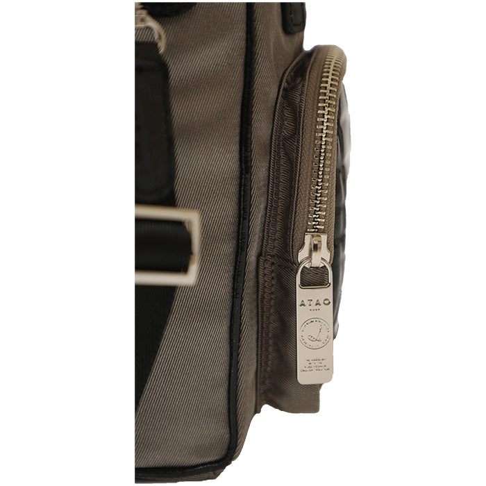 ゴルフブランドとして誕生したATAO GOLF。今季のシーズンでは、新ライン「スマルトシリーズ」。イタリアンレザーとナイロン素材を組み合わせ、晴れの日も雨の日も思うがままに。シンプルなアイテムトーンは、ゴルフプレーはもちろん日常でも愉しめます。どこでどのようにアイテムを取り入れるか、あなた次第。ここが原点であり、あたらしい日常への入り口です。上質で光沢感のあるイタリアのエナメルレザーとナイロンを組み合わせ、職人による手仕事で生産したこだわりのバッグとなります。エナメルはイタリア語で「スマルト」と呼ぶことから、シリーズ名が誕生。急な天候の変化にも対応できる撥水加工の機能性に加え、持ち運びしやすい設計デザインとスマートなシルエットは、移動中などの気分を上げてくれること間違いなしです。縦型が特徴のミニトート。ショルダータイプで、他のバッグと組み合わせも相性抜群です。(ATAOGOLF)(アタオゴルフ)(あたおごるふ)(男女兼用)(ユニセックス)(男性も使える)(メンズ)(smalt mini tote)(スマルトミニトート)(すまるとみにとーと)(ミニバッグ)(ポシェット)(斜め掛け)(ワンショルダー)(肩掛け)(ハンドバッグ)