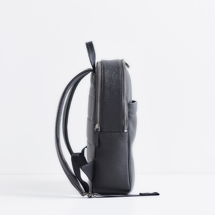 機能的なビジネスリュック「SOU!」登場。オールレザーのリュックの割に軽量。プライベート空間とビジネス空間の二層に分かれたファスナーポケットが特徴のセパレートデザイン。一方にはコスメポーチやストッキング、ちょっとした食べ物等のプライベートグッズを、もう一方にはPC専用ボンディングポケットにノートパソコンなら13インチまで、タブレット、A4ファイル、名刺入れ等、ビジネスに必要な荷物をイン。スーツスタイルで背負った際にも大きく見えずにスッキリ見えします。女性だけでなく男性も持ちやすいデザイン。ビジネスシーンにもサラリと馴染むハイニッケルのシルバー金具を採用している。ATAO(アタオ)(あたお)(SOU!)(ソウ)(そう)(バッグ)(リュック)(バックパック)(ビジネスバッグ)(防水)(防水レザー)(3M)(ノートパソコン用ポケット)(タブレット用ポケット)(ボンディングポケット)(A4)(男女兼用)(ユニセックス)